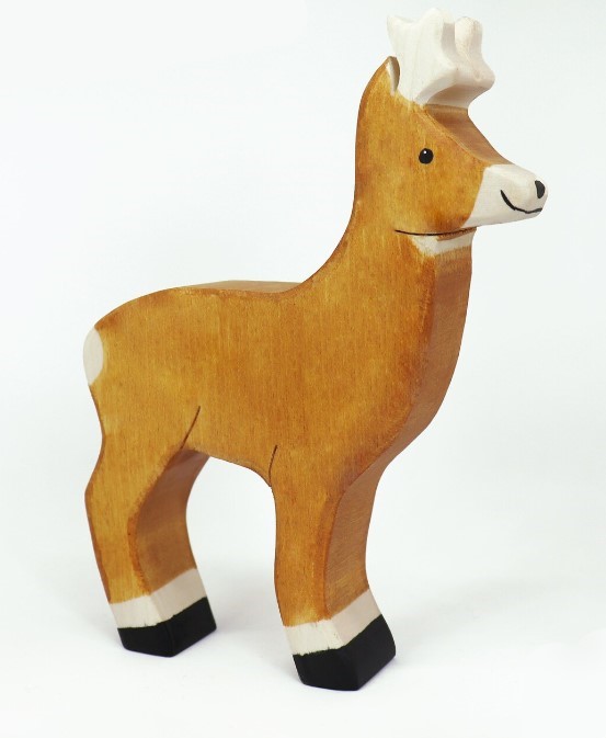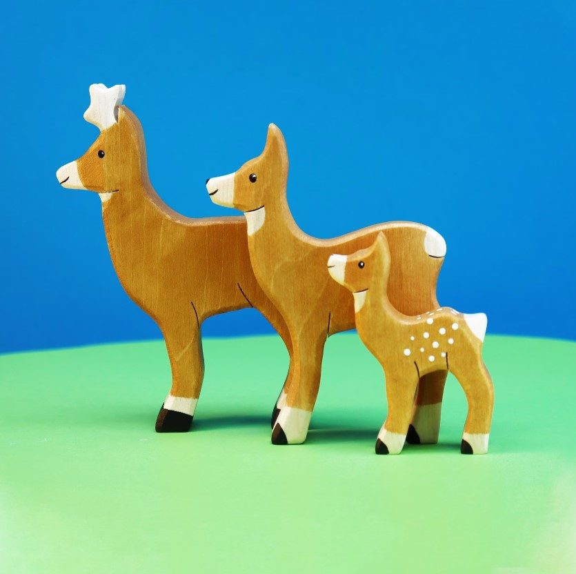 Set de 4 figurine din lemn: familia de căprioare.