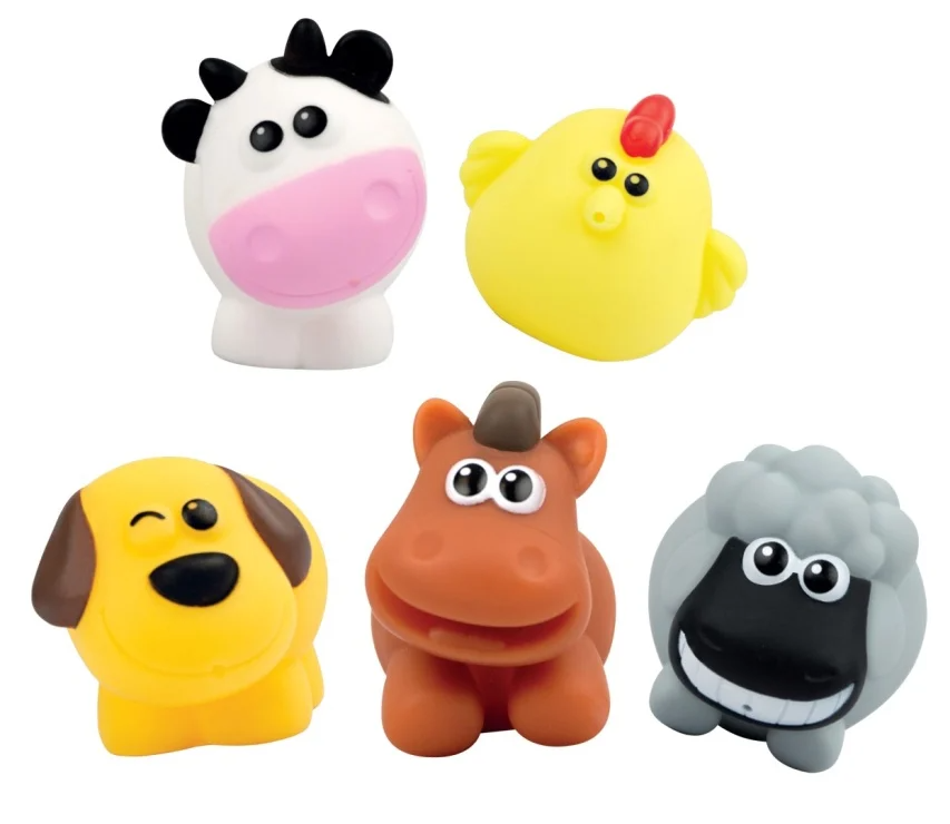 Setul Jucarii de Baie Animalute Winfun include cinci figurine prietenoase inspirate de animalele de la ferma caine, vaca, gaina, cal si oaie. Aceste animalute colorate sunt ideale pentru a transforma baia intr-o experienta distractiva. Fiecare animalut este usor de manevrat, stimuland dezvoltarea abilitatilor motorii fine ale micutilor. Setul incurajeaza jocurile imaginative si ajuta copiii sa invete despre animale intr-un mod jucaus, chiar si in timpul baii. Animalutele sunt rezistente, usor de curatat si perfect adaptate pentru a aduce distractie in fiecare zi.