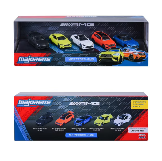 Descoperă cele mai iconice mașinuțe metalice cu Majorette! Acest set exclusiv îți oferă 5 modele Mercedes-AMG la scara 1/64, cu părți mobile, suspensii și faruri translucide — perfecte pentru a-ți îmbogăți colecția sau pentru a-i încânta pe copii începând de la 3 ani. Așadar, ești gata să faci „vroom-vroom”?