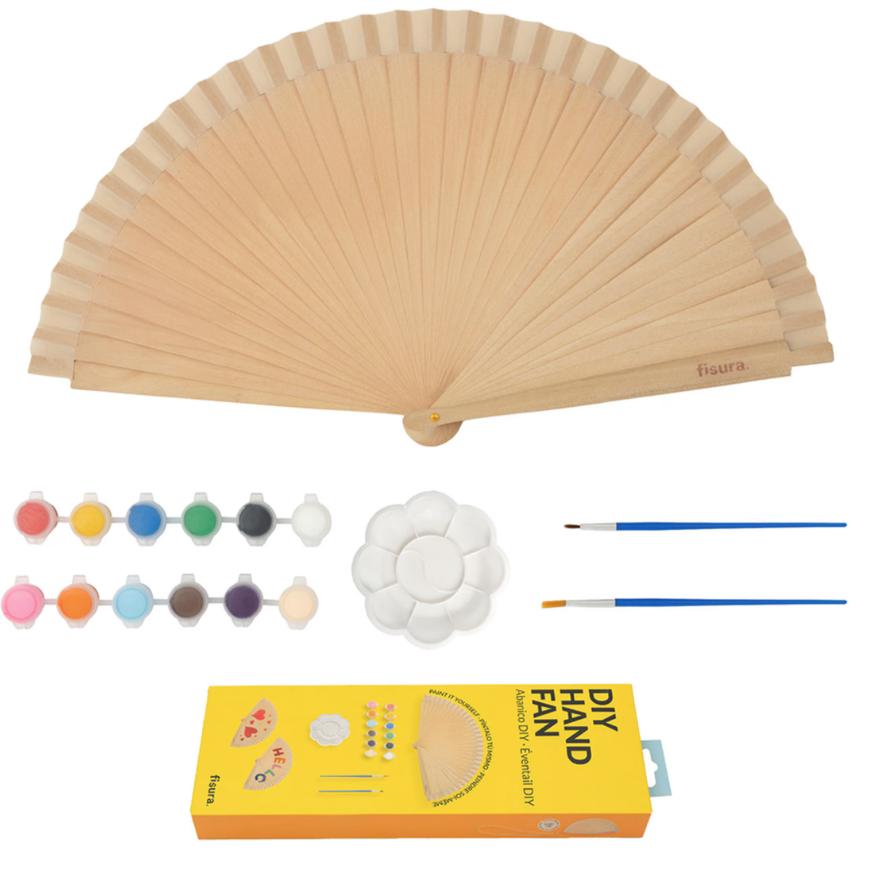 Evantaiul, realizat din lemn natural , este pânza perfectă pentru a da viață celor mai colorate idei ale tale. Ideal pentru a petrece timp singur, cu familia sau cu prietenii, creând o piesă unică pe care o poți lua cu tine pentru a te răcori cu stil.