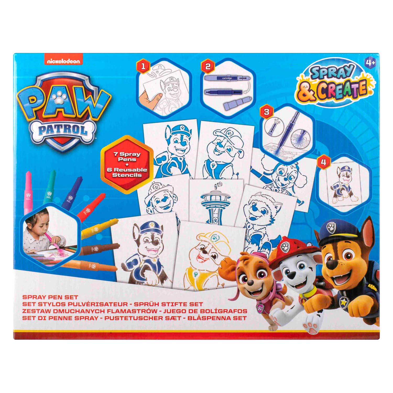 Setul creativ - Paw Patrol conține 5 tuburi de spray, cu diverse culori vibrante, pentru a înviora imaginile cu personajele tale preferate. Alături de acestea, setul conține și 6 șabloane cu imaginile cățelușilor.