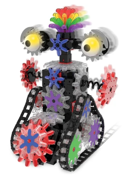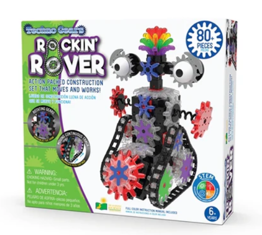 - Cu peste 80 de piese de construcție colorate, precum plastic translucid colorat și piese cromate strălucitoare, roți dințate rotative și lanțuri în continuă mișcare Robotul include tot ceea ce entuziastul de inginerie are nevoie pentru a-și construi propriul rover în mișcare.