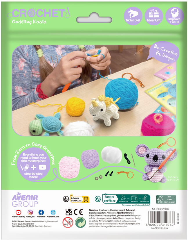 Setul de croșetat Cuddling Koala include absolut tot ce este necesar pentru a crea un accesoriu adorabil și fermecător în formă de koala.