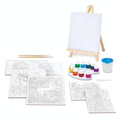 Atelierul de pictura Aquarelle este setul ideal pentru ca un copil sa invete sa picteze cu tehnica acuarelei. Pregateste-ti sevaletul si incepe cu unul dintre cele sase cartonase preimprimate cu contururi cerate. Aceasta tehnica te va ajuta sa pictezi fara teama si liber in desenele preimprimate, obtinand un rezultat impresionant.