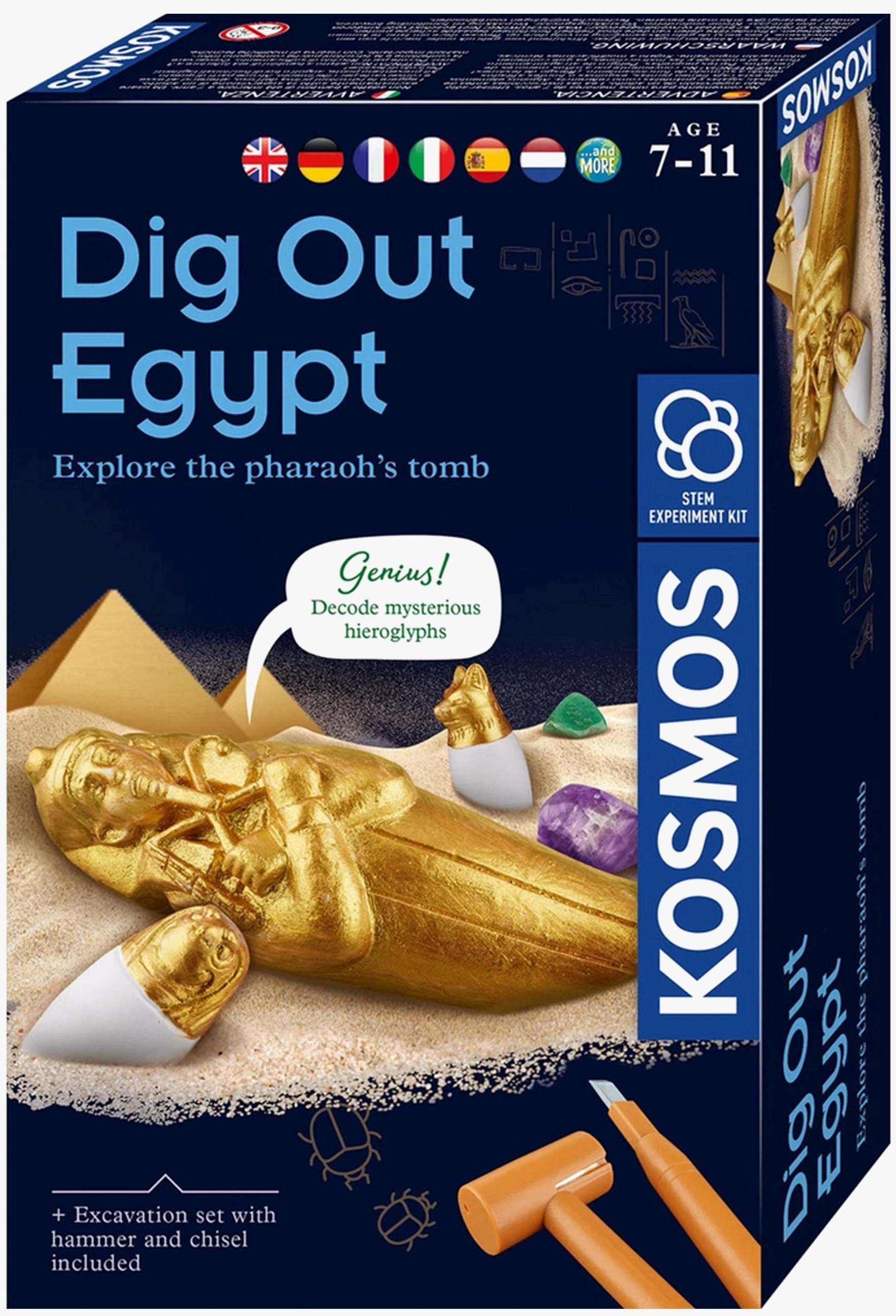 Set arheologic Comoara Faraonului - Descoperiti secretele Egiptului Antic! Setul arheologic Comoara Faraonului este o calatorie extraordinara in timp, care te va face sa te simti ca un adevarat arheolog care descopera secretele Egiptului antic! Setul include un bloc de lut acoperit cu hieroglife realiste, pe care le puteti citi gratie instructiunilor atasate, pline de fapte si sfaturi interesante. Citirea simbolurilor antice este primul pas catre descoperiri fascinante. Setul include unelte speciale - o dalta si un ciocan - care iti permit sa extragi treptat comorile ascunse in bloc. Jocul nu este doar captivant, dar dezvolta si abilitati manuale, rabdare si imaginatie. Pe masura ce explorezi, s-ar putea sa dai peste artefacte unice, cum ar fi un sarcofag in miniatura, patru baldachini care simbolizeaza recipiente pentru organele decedatului si minerale reale: ametist si aventurin.