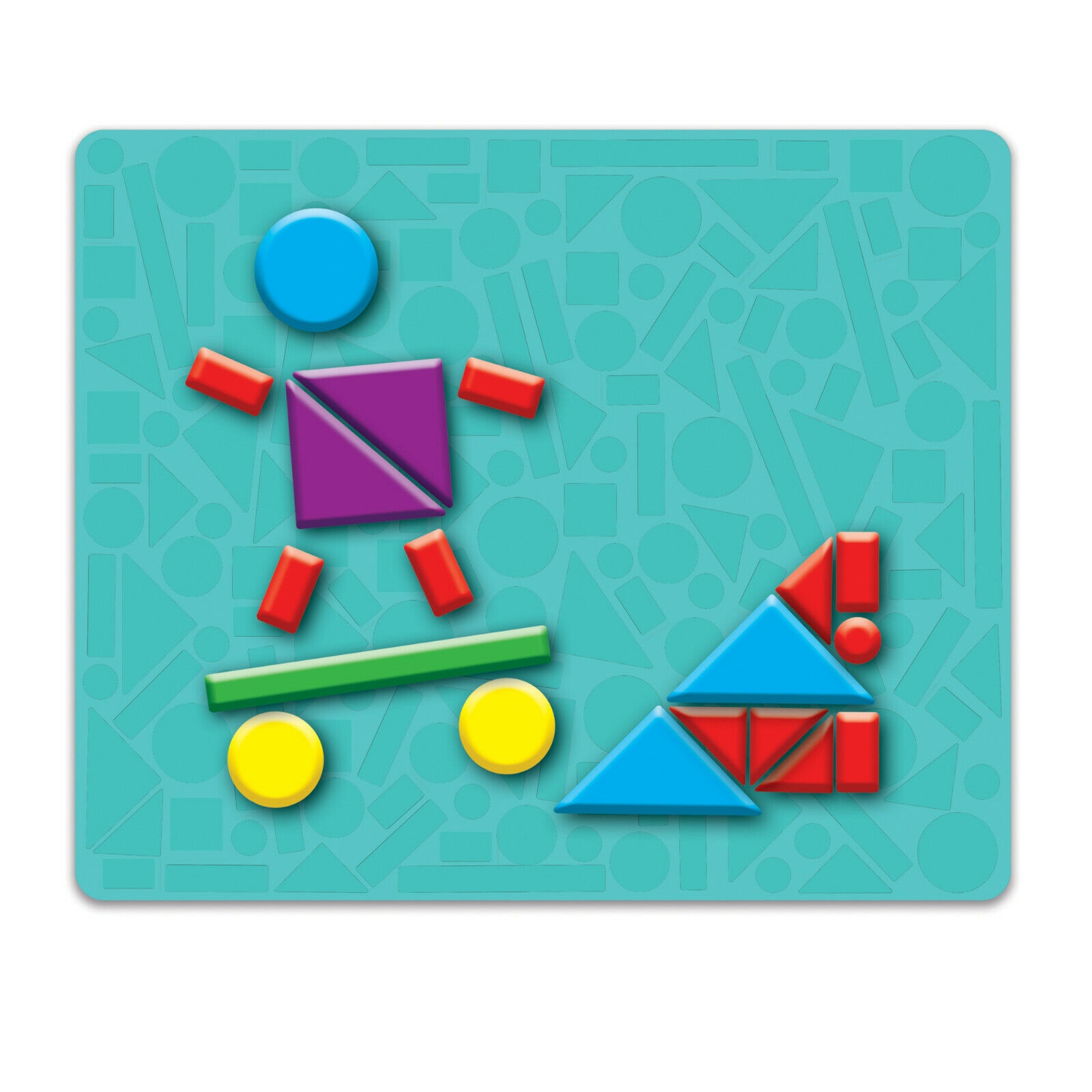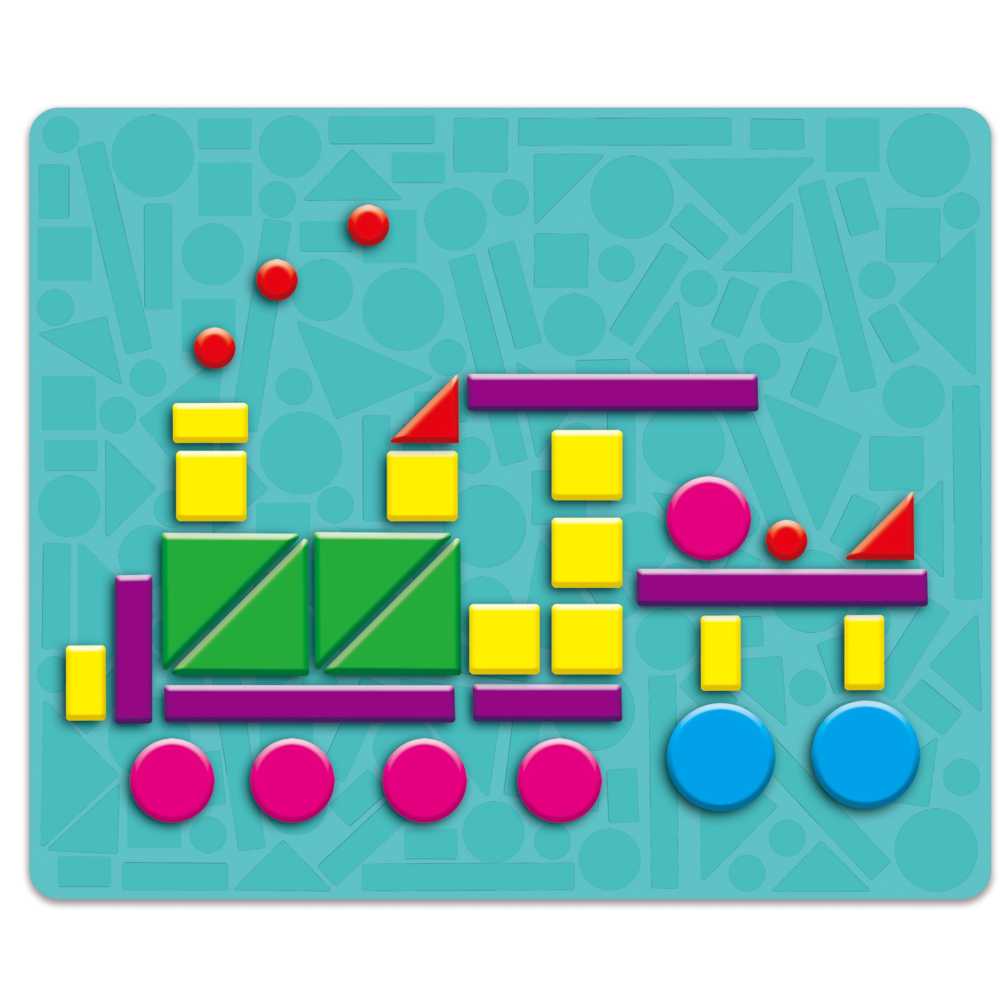 Micuții vor adora să aranjeze și rearanjeze formele colorate pentru a obține modele interesante.