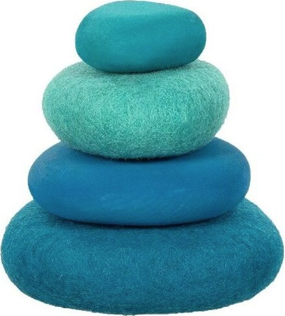 Tonurile de albastru moale ale acestor pietre stivuibile din pâslă de lână și lemn creează o atmosferă liniștitoare și inspiratoare care eliberează creativitatea minților tinere.
