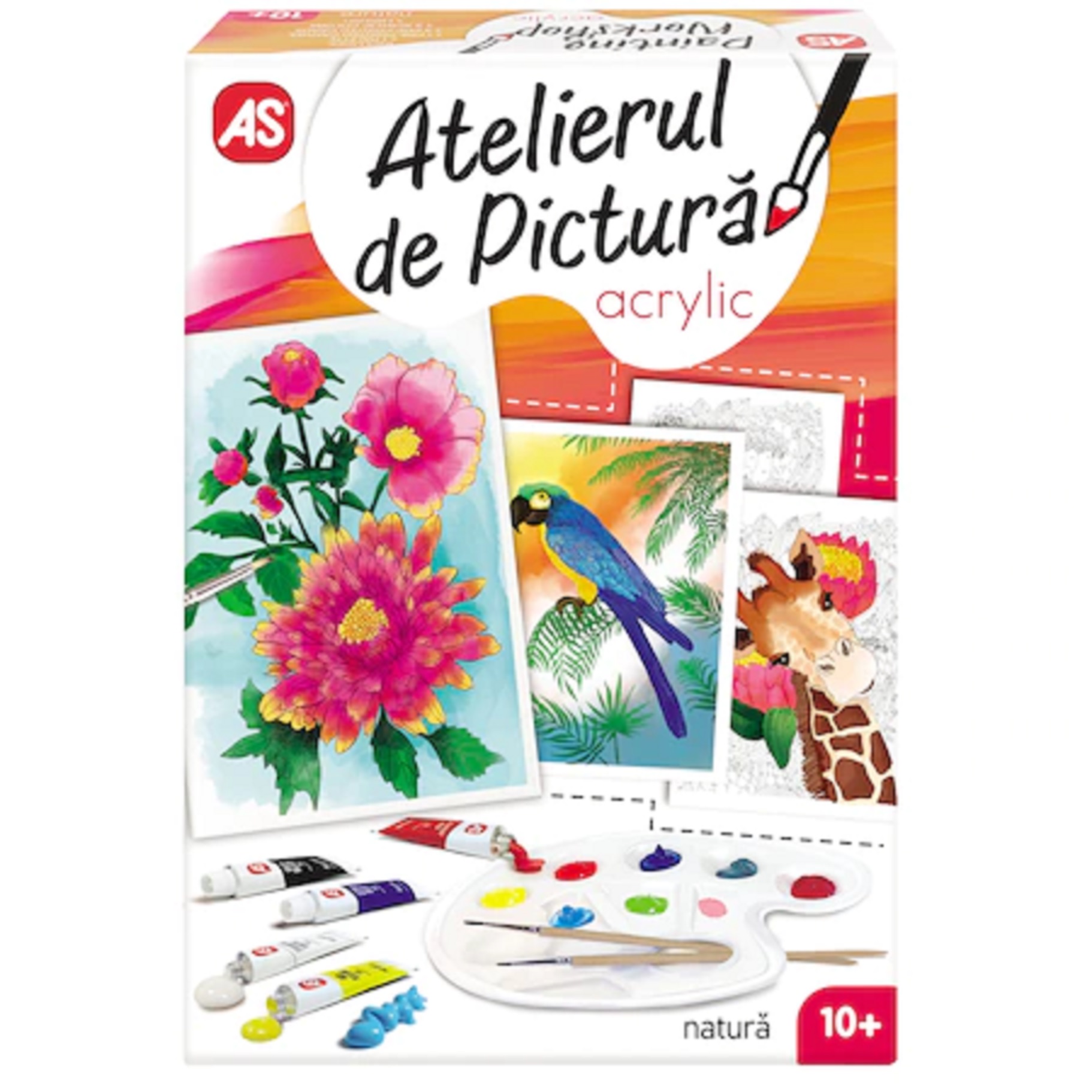 Cu Atelierul de Pictura Acrylic Mini, te poti simti un adevarat artist! Setul ofera posibilitatea de a patrunde in lumea artei, de a petrece placut si productiv timpul liber. Este perfect pentru oricine, indiferent de varsta, nivel de experienta sau calificare. Poate fi utilizat atat acasa, cat si la scoala. Uneltele si vopselele din set, va vor insoti in minunata lume a culorilor, iar creatiile finale pe panzele din set vor constitui un cadou minunat pentru cei dragi sau un element de decor unic! Tematica setului: Natura. Setul contine: 1 paleta, 5 culori acrilice, 3 cartonase pentru desen, 1 panza pentru pictura, 1 pensula si 1 manual de instructiuni. Valorile dezvoltate: Indemanarea, Concentrarea, Rabdarea, Coordonarea mana-ochi, Creativitatea, Atentia. Varsta recomandata: 10+.