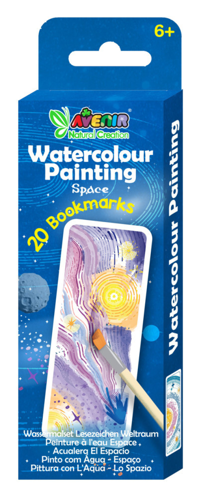 În componența setului pictura cu apa - In spatiu intră 20 semne de carte și o pensulă.