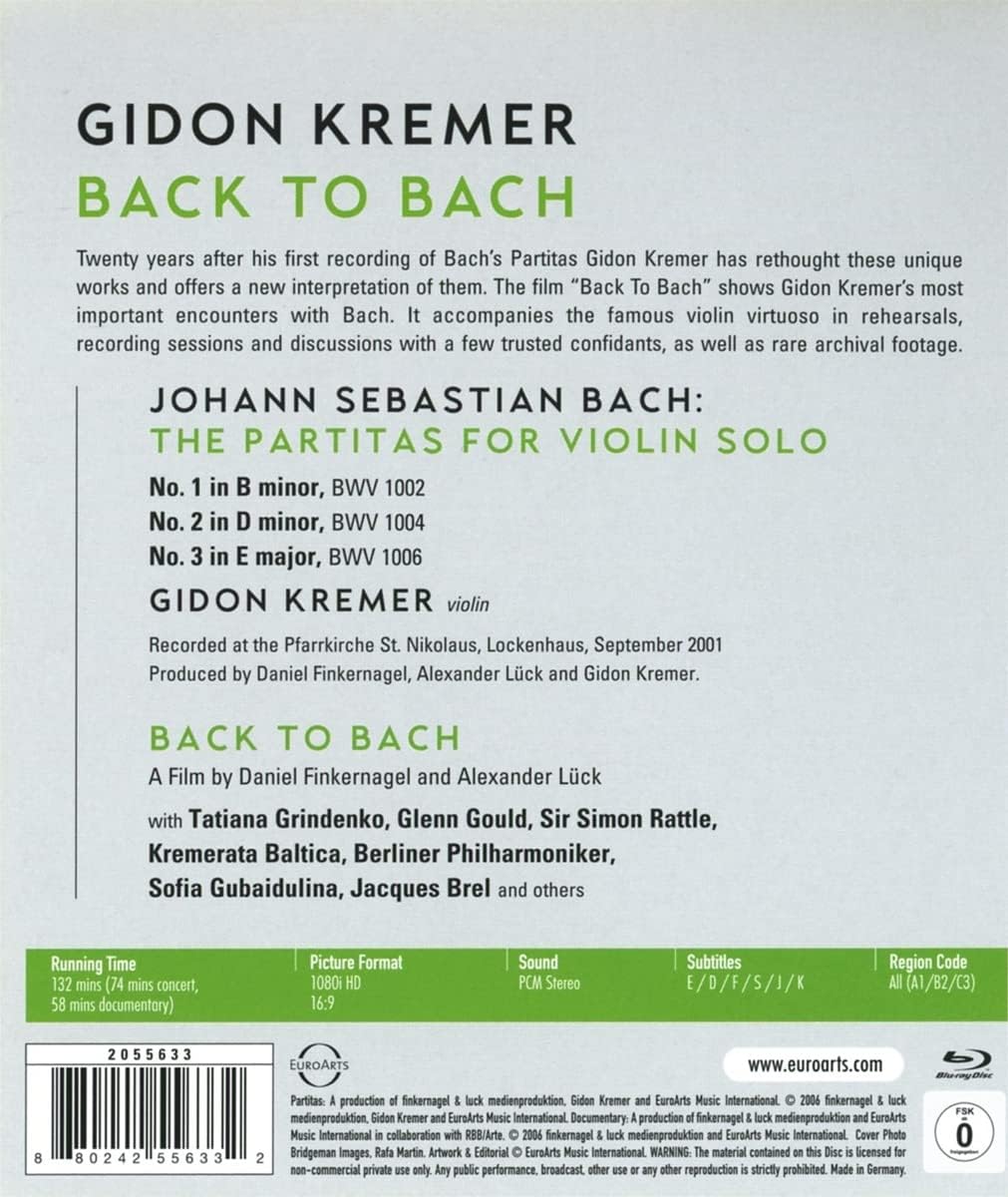 The film "Back to Bach" shows Gidon Kremer's most important encounters with Bach in a very personal way. He accompanies the famous violin virtuoso and features rehearsals, recording sessions and conversations with some familiars, as well as rare archival material.