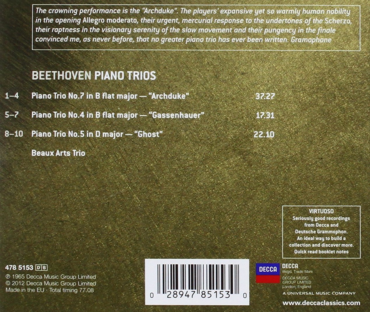 9. Beethoven: Piano Trio No.5 in D, Op.70 No.1 - "Geistertrio" - 2. Largo assai ed espressivoby Beaux Arts Trio10:26. . Album Only10. Beethoven: Piano Trio No.5 in D, Op.70 No.1 - "Geistertrio" - 3. Prestoby Beaux Arts Trio5:41