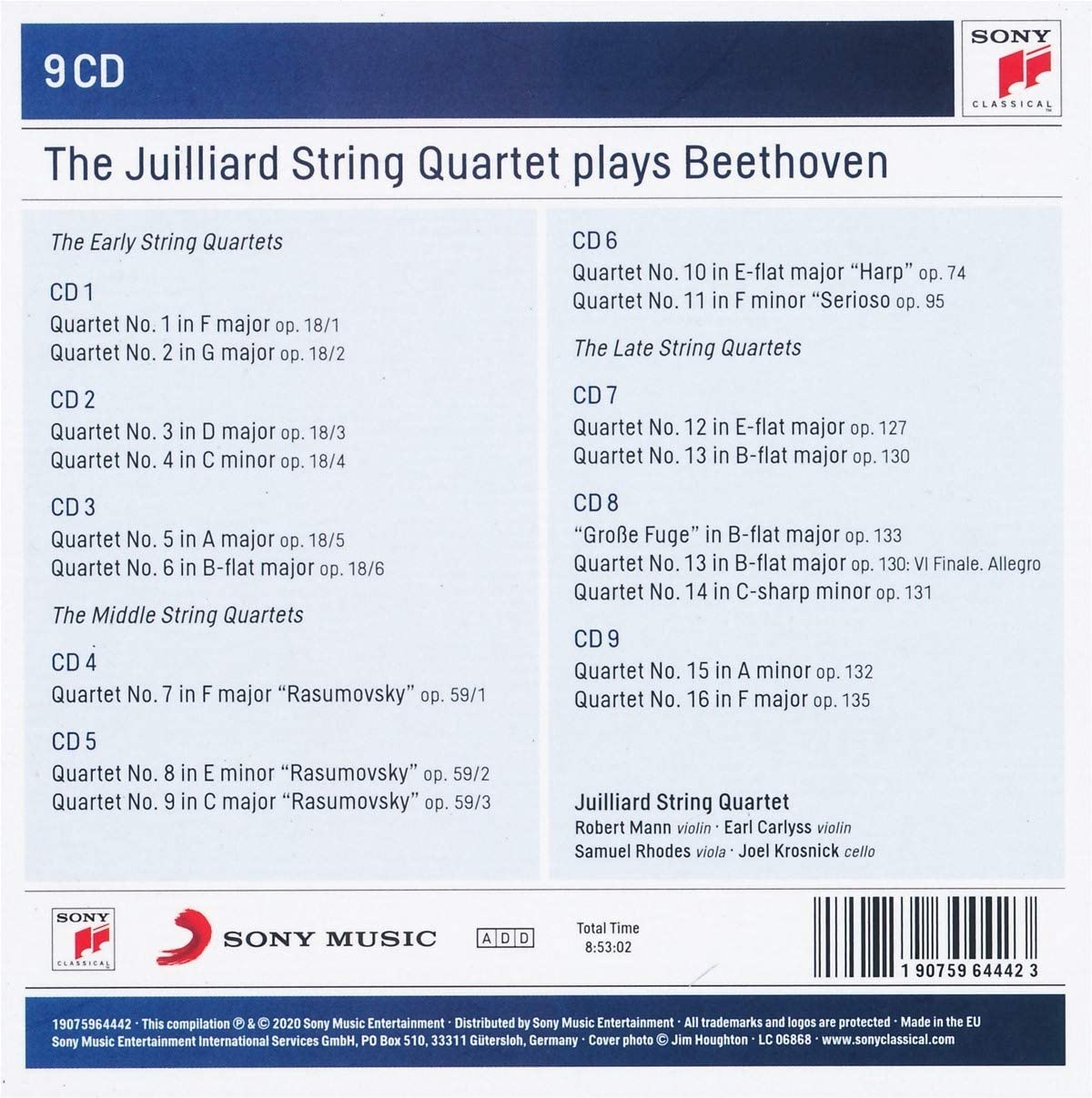 In the 1960s and in the decades following, the Budapest's mantle at Columbia was passed on to the Juilliard String Quartet. Over the years, with some changes in personnel, the ensemble repeatedly set down its famously lean, energetic and expressive interpretations of the Beethoven quartets in New York recording studios. These have remained catalogue staples. Less well known is the Beethoven cycle they recorded live in Washington at the Library of Congress in 1982. Gramophone singled out this complete traversal for its special depth and flexibility. Presented here on 9 CDs, this is its first Sony release.
