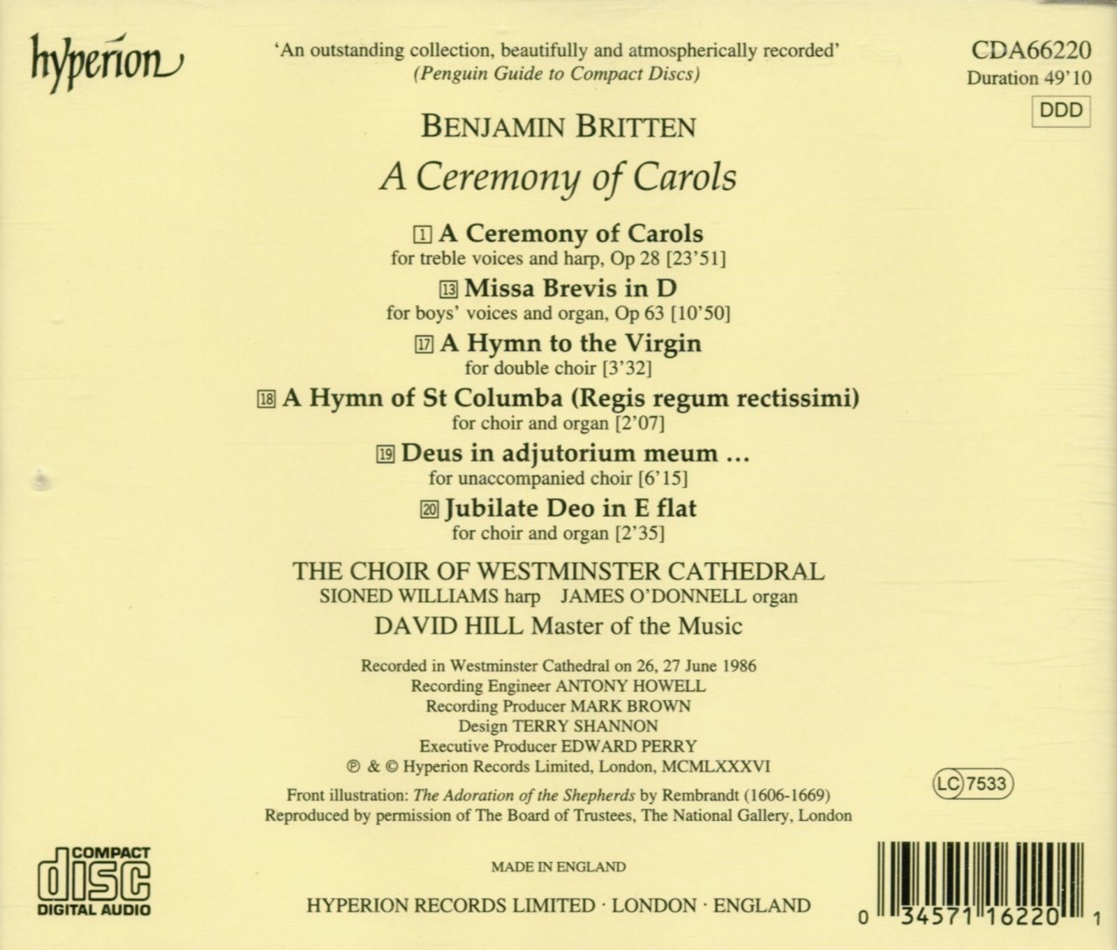 A Ceremony Of Carols (For Treble Voices And Harp), Op. 28 (23:51)