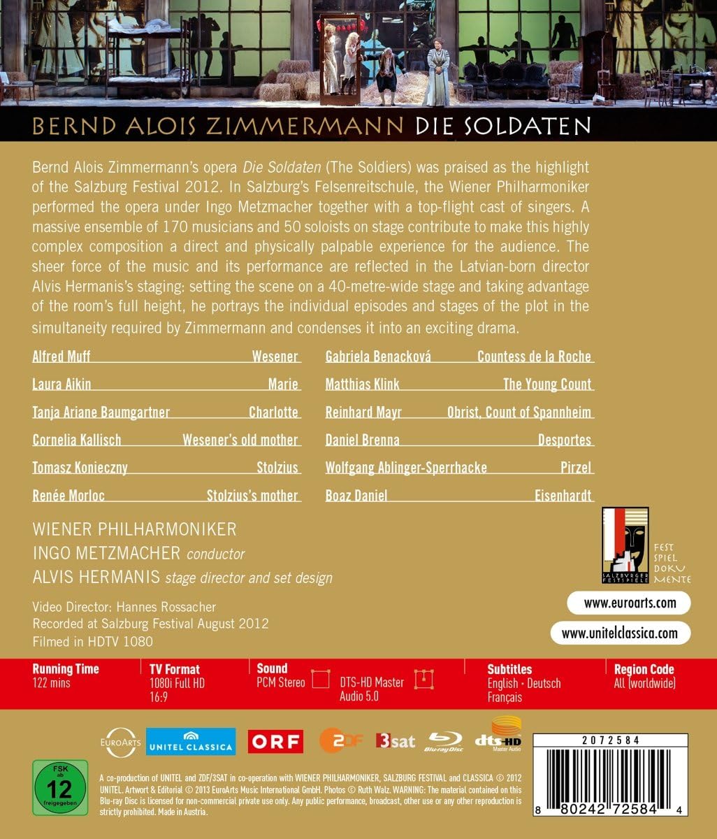 This widely praised production which was the highlight of the Salzburg Festival in 2012 made full use of the width of the Salzburger Felsenreitschule to give room to the enormous dimensions of Zimmermann's monumental opera, featuring a massive ensemble of 170 musicians including the Wiener Philharmoniker and led by German conductor Ingo Metzmacher.