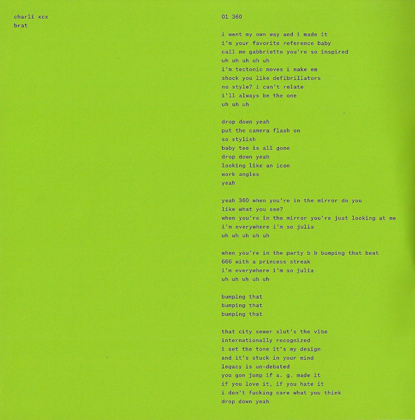 "Charli has crafted a perfect pop album (with the help of the most in-demand producer in the business, AG Cook). Brat is authentic, sensitive, and you’ll be raring to go out once you’ve finished listening." The Telegraph (UK)