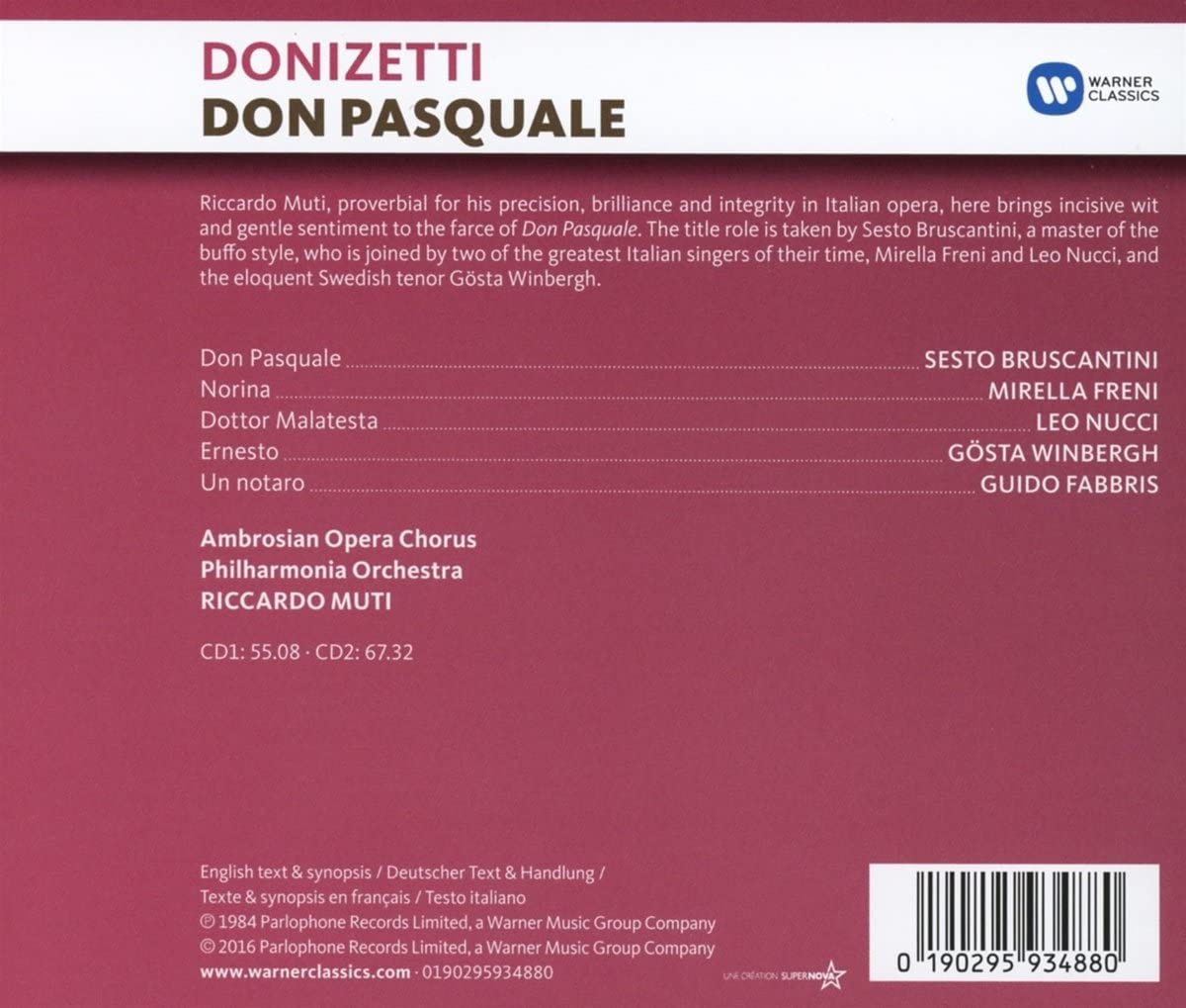 Mirella Freni, Sesto Bruscantini, Leo Nucci, Gosta Winbergh, Ambrosian Opera Chorus, Philharmonia Orchestra, Riccardo Muti