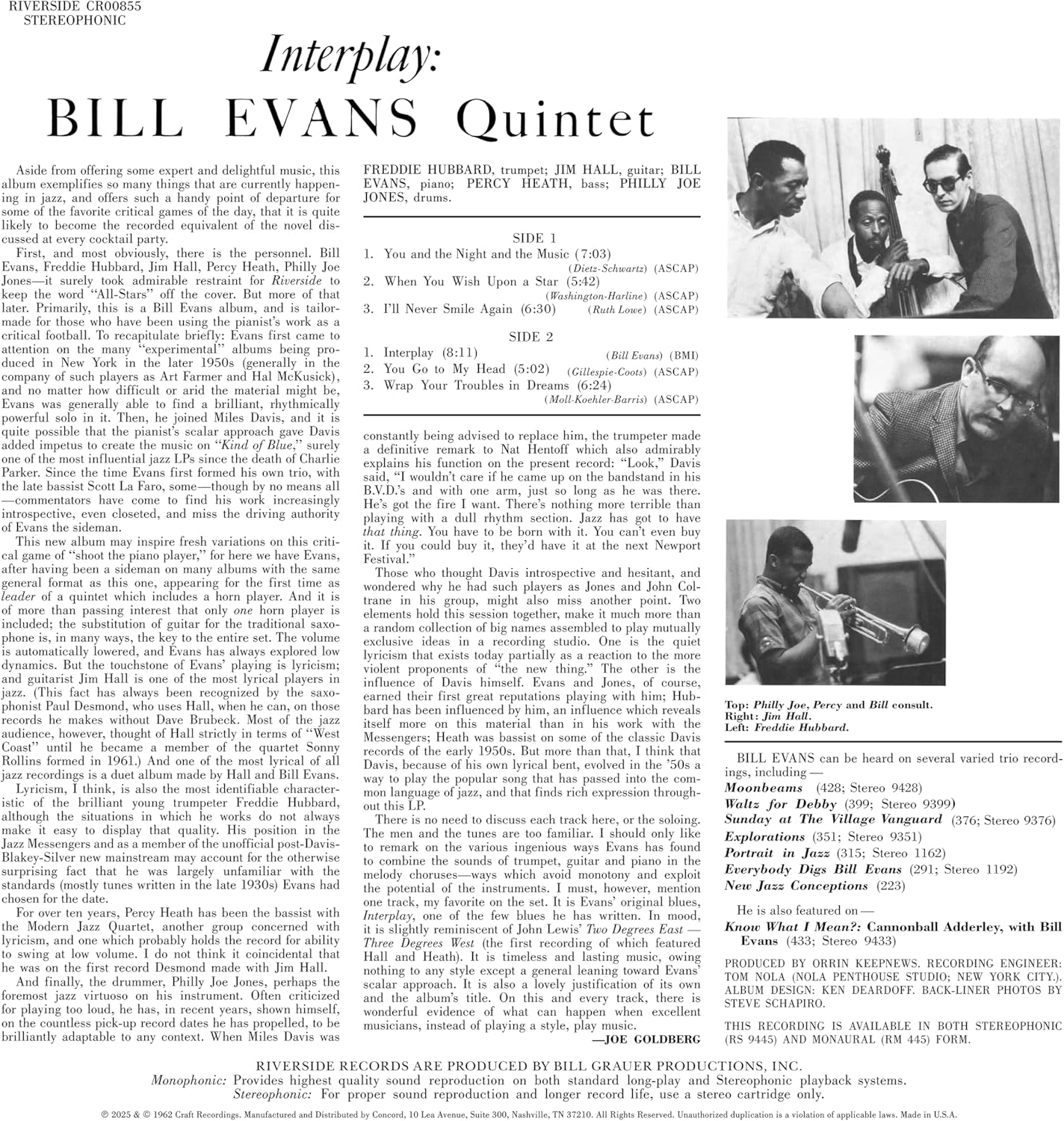 Side A:You And The Night And The Music - 7:04When You Wish Upon A Star - 5:42I'll Never Smile Again - 6:31Side B:Interplay - 8:11You Go To My Head - 5:02Wrap Your Troubles In Dreams - 6:24