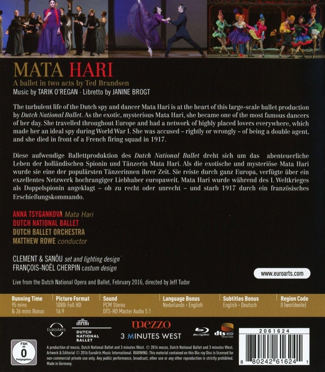 The Dutch National Ballet perform this production, choreographed by Ted Brandsen, about the life of the infamous dancer and First World War spy Mata Hari, with Anna Tsygankova in the title role.