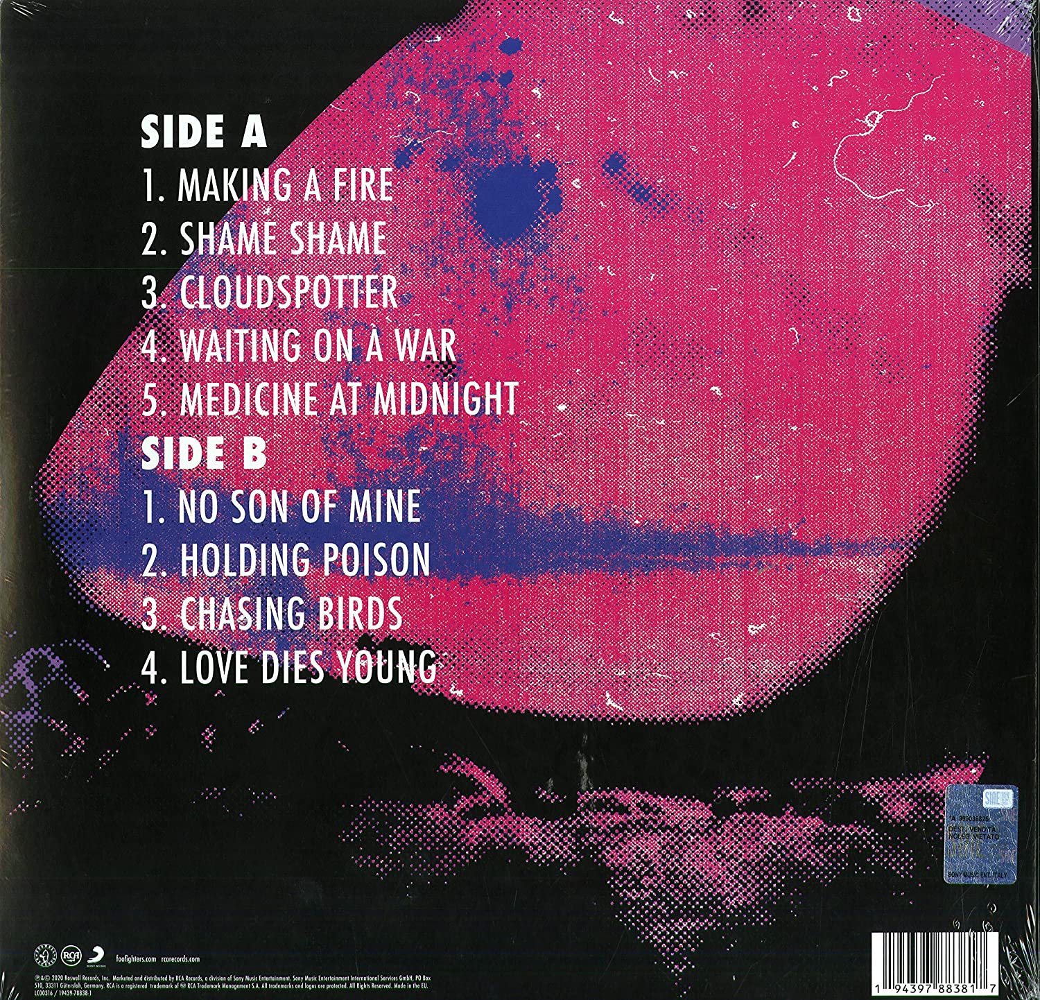 FOO FIGHTERS Medicine At Midnight (2021 UK limted edition 9-track LP pressed on Blue Vinyl - in the UK this colour variant is exclusive to Independent Record Stores. The groups tenth studio album featuringthe single Shame Shame. Housed in a picture sleeve which remains sealed in the hype-stickered shrink)