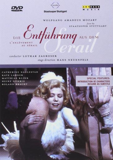 Mozart's first operatic hit Die Enfuhrung aus dem Serial ("The abduction from the seraglio") was a singspiel, a forerunner of the musical comedy with spoken dialogue between the musical numbers. In this beautifully sung, imaginatively staged production from the Stuttgart Opera House the director Hans Neuenfels splits each character by placing an actor at every singer's side who not only takes over his role for the spoken dialogue but also interacts with his singing double and other characters in the opera. Sometimes the pairing brings a sparring match between actor and singer, adding a further dimension to the drama, at other times the conductor of the orchestra becomes involved, as when Belmonte, the Spanish nobleman, directs him to cue the orchestra for his first aria. The production, in modern dress with each character clearly delineated by the costume designer, takes a few minutes to warm up while we address the director's concept. Osmin, the keeper of the harem is a tattooed thug with a sidekick to match. The aristocratic Konstanze, who has been abducted and imprisoned under him, and her intended Belmonte are in fashionable black, while their two servants are the object of much merriment. The spoken role of the Pasha adds a dramatic frisson to the plans for the abduction. His entry with his retinue walking toward the audience on a raised platform holding stakes topped out with severed heads is a riveting piece of theatre. So too is the final appearance of the ensemble.
