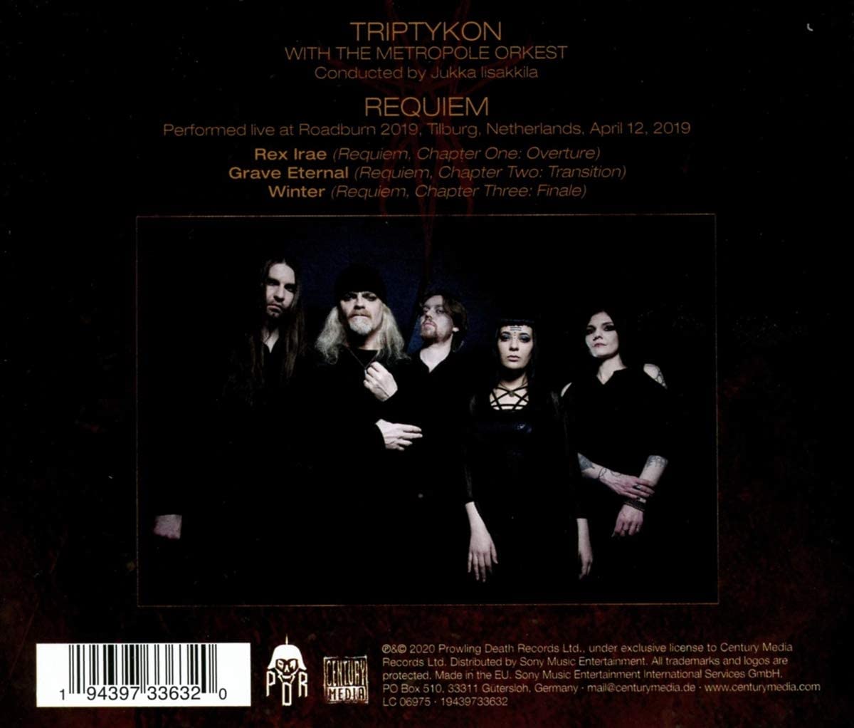 TRIPTYKON with the Metropole Orkest - "Requiem (Live At Roadburn 2019)" marks the bombastic conclusion of a project over 30 years in the making: The legendary Celtic Frost/Triptykon "Requiem" performed for the first time in its entirety and with full classical orchestration (by the Dutch Metropole Orkest). "Requiem" (46:00 min.) is composed of three chapters: 1. "Rex Irae" (06:34 min. / First appeared on 1987's "Into The Pandemonium" album by Celtic Frost) 2. "Grave Eternal" (32:28 min. / Newly written middle part) and 3. "Winter" (06:54 / First appeared on 2006's "Monotheist" album by Celtic Frost).
