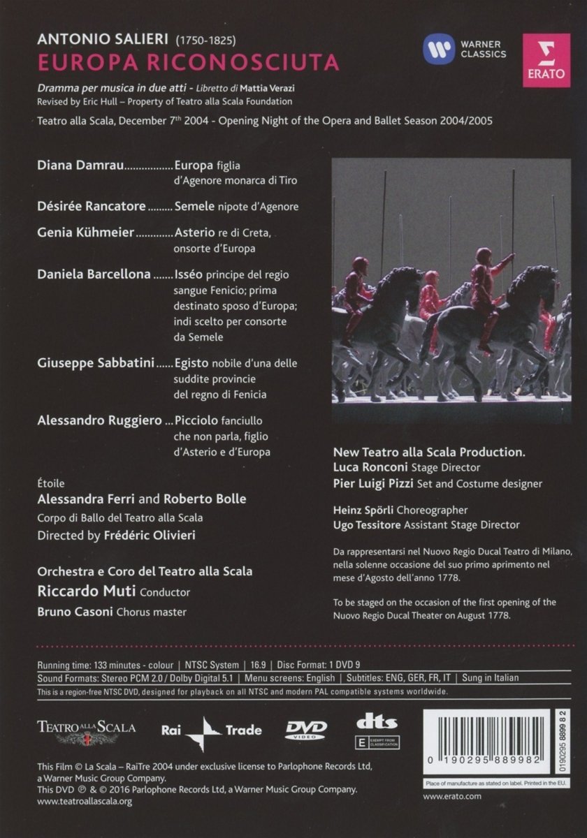 Diana Damrau performs the title role of Salieri's opera staged in the Teatro alla Scala in 2004. Riccardo Muti conducts the Teatro alla Scala Orchestra and Chorus with the cast also including Desirée Rancatore as Semele and Genia Kühmeier as Asterio.