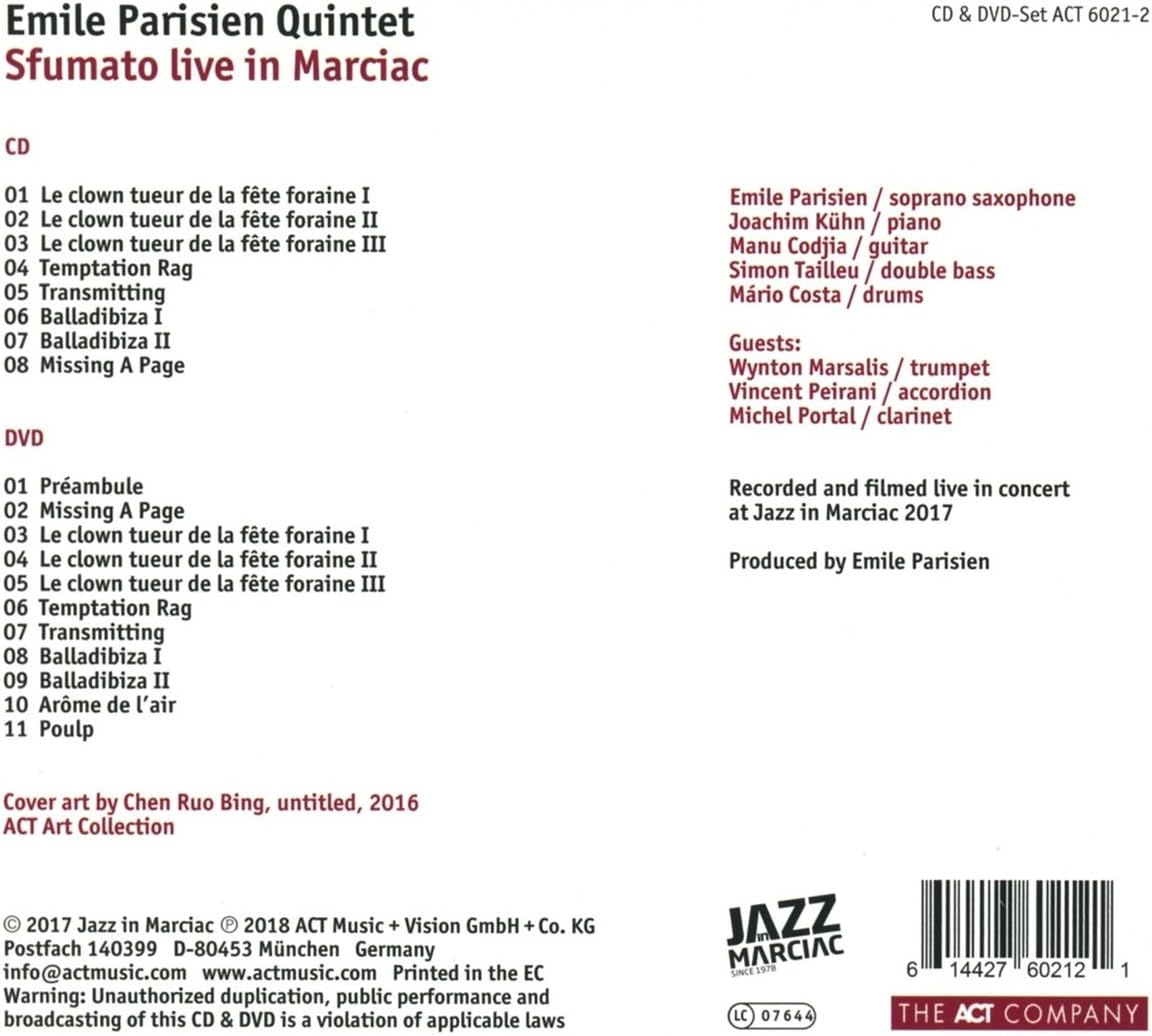 Emile Parisien attended jazz classes at the College de Marciac as a teenager. Marciac is a small village in the South West of France, which has been home to one of the leading jazz festivals in the world for the past 40 years. This was how Emile was able to participate in several master classes given by Wynton Marsalis, who is a Patron both of the College and of the Festival. In spring 2017 Jazz in Marciac offered Emile a post as Artist in Residence, giving him 'carte blanche.' After giving the matter a lot of thought, Emile Parisien assembled a cast like a stage director would do it, and to say the very least it had some surprises in it: he wanted an "intergenerational" group, a reflection of wanting to obey sudden impulses, plus the desire to bring about encounters in many forms. Encounters are definitely something Emile loves. There's a septuagenarian, pianist Joachim Kuhn, a major name in "open" jazz. Manu Codjia, a guitarist in his 40's, an incredible sound explorer involved in numerous projects on the European scene. And then there are three in their thirties: Emile himself, of course, plus Simon Tailleu and Mario Costa. This last pair are still little known in the jazz world; they were spotted by Emile during concerts and festivals. It was a gamble to hire two young musicians to give rhythmic underpinning to the top drawer soloists, but it was a gamble which paid off. After four days of intense and convivial rehearsals during Marciac's spring residency, Sfumato's first concert was a complete success. His intuition had been right. In August 2017 Sfumato were booked to play at Marciac, where fans of Sfumato were given a huge surprise: during the concert Wynton Marsalis joined the band on the stage of the festival tent. Wynton was visibly extremely happy to be back with Emile and improvised superbly and warmly on two tunes. It was quite an eye-opener - as this release will prove.
