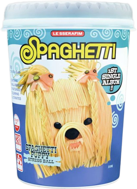 Continuing their sold-out world tour 'EASY-CRAZY-HOT', LE SSERAFIM (KIM CHAEWON, SAKURA, HUH YUNJIN, KAZUHA and HONG EUNCHAE) releases their 1st Single Album titled 'SPAGHETTI' - available in a 'STRESS BALL ver.'.