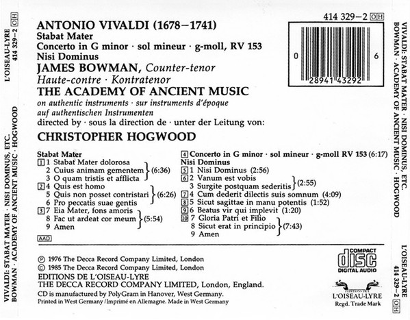 Stabat Mater - Nisi Dominus - Concerto In G Minor