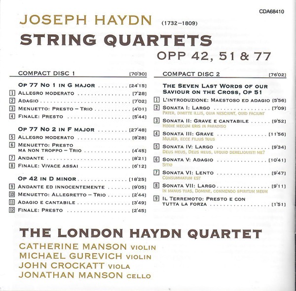 • String Quartets Opp. 42 & 77. Seven Last Words Of Our Saviour On The Cross