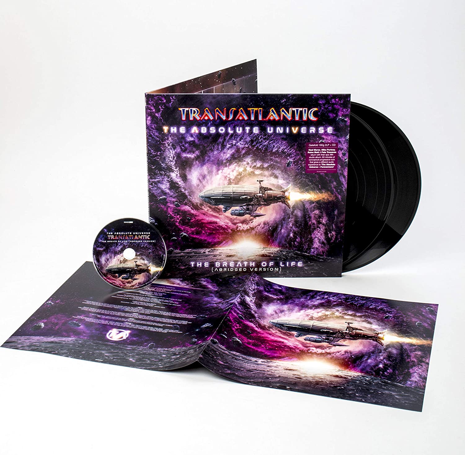 Transatlantic have never been a band to resist a challenge. So it should come as no surprise that for their fifth album 'The Absolute Universe', Neal Morse Roine Stolt Pete Trewavas and Mike Portnoy have really gone out to do something a little unusual. "We have actually come up with something unprecedented," says Portnoy proudly. "We've got two versions of this album. There's a two CD presentation ('Forevermore'), which is 90 minutes long, and a single one ('The Breath Of Life') - that's 60 minutes. The single CD is NOT an edited version of the double CD. They're new recordings. What we have done are different approaches to the songs for this! We wrote fresh lyrics and have different people singing on the single CD version tracks as compared to those on the double CD. We revamped the songs to make the two versions different. "For this record, the band have also returned to the concept album format: "What we have is essentially one giant composition, split into chapters. The storyline is about the struggles facing everyone in society today" comments Portnoy. "We didn't start out with the idea of this being conceptual," admits Stolt. "The way things work with us is that we have a load of ideas, and these are developed spontaneously when we meet up. Everything happens in the moment." For Trewavas, 'The Absolute Universe' is a momentous project. "I think it is right up there with the very finest albums we've done. "'The Absolute Universe - The Breath of Life' is available as a Limited CD Digipak, Gatefold 2LP + CD & as Digital Album. 'The Absolute Universe - Forevermore' is available as a Limited 2CD Digipak, 3LP+2CD Boxset & as Digital Album. 'The Absolute Universe - The Ultimate Edition' collects both versions together as a Limited Deluxe Clear 5LP + 3CD + Blu-ray box-set, featuring expanded 16page LP-booklet, 5.1 surround sound mix with visuals, making-of documentary, 60x60cm poster - contained within a lift-off box finished with silver foil.