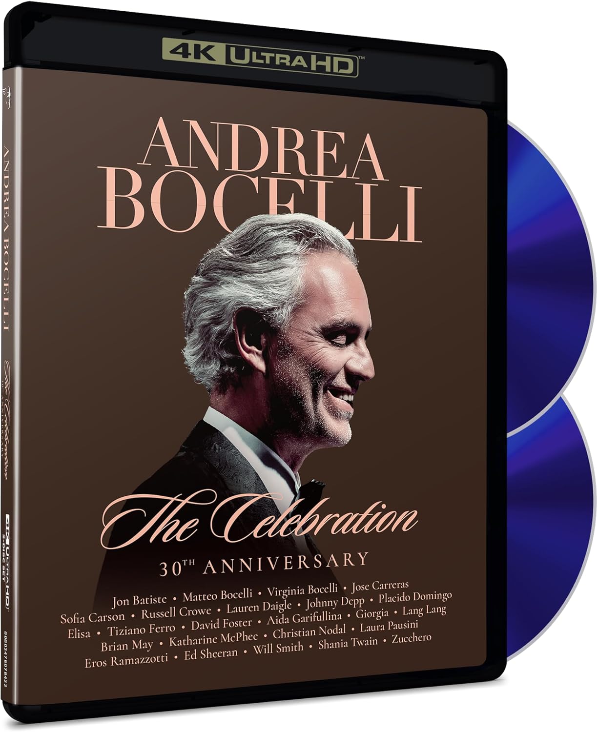 He’s sung for popes, presidents and royalty and has performed in the greatest concert halls and opera houses in the world. Now, in his 30th year as a performing artist, Italian tenor Andrea Bocelli takes to the stage in his home, Tuscany – the perfect place for a magical celebration of an extraordinary life in music. Filmed at the Teatro del Silenzio (Theatre of Silence) in Lajatico over three nights in 2024 and marking his 30th year as an artist, this once-in-a-lifetime event sees classical star Andrea Bocelli appear in his home of Tuscany with a star-studded lineup of special guests to perform songs that have been the pillars of his career. This 2-disc package features two shows – “The Celebration” and “30 Years of Musical Inspiration” and over 4 and a half hours of performances. With incredible staging including a stunning sundial centrepiece in the middle of a lake, and 500 drones which lift into the sky in three breathtakingly special moments, Bocelli is joined by an 80-piece orchestra, a cast of over 200 musicians and family and friends including Ed Sheeran, Jon Batiste, Shania Twain, Brian May and more. It’s a night that transforms both the landscape and beautiful Tuscan sky into something totally spectacular. The result: a mesmerising and truly unforgettable concert.