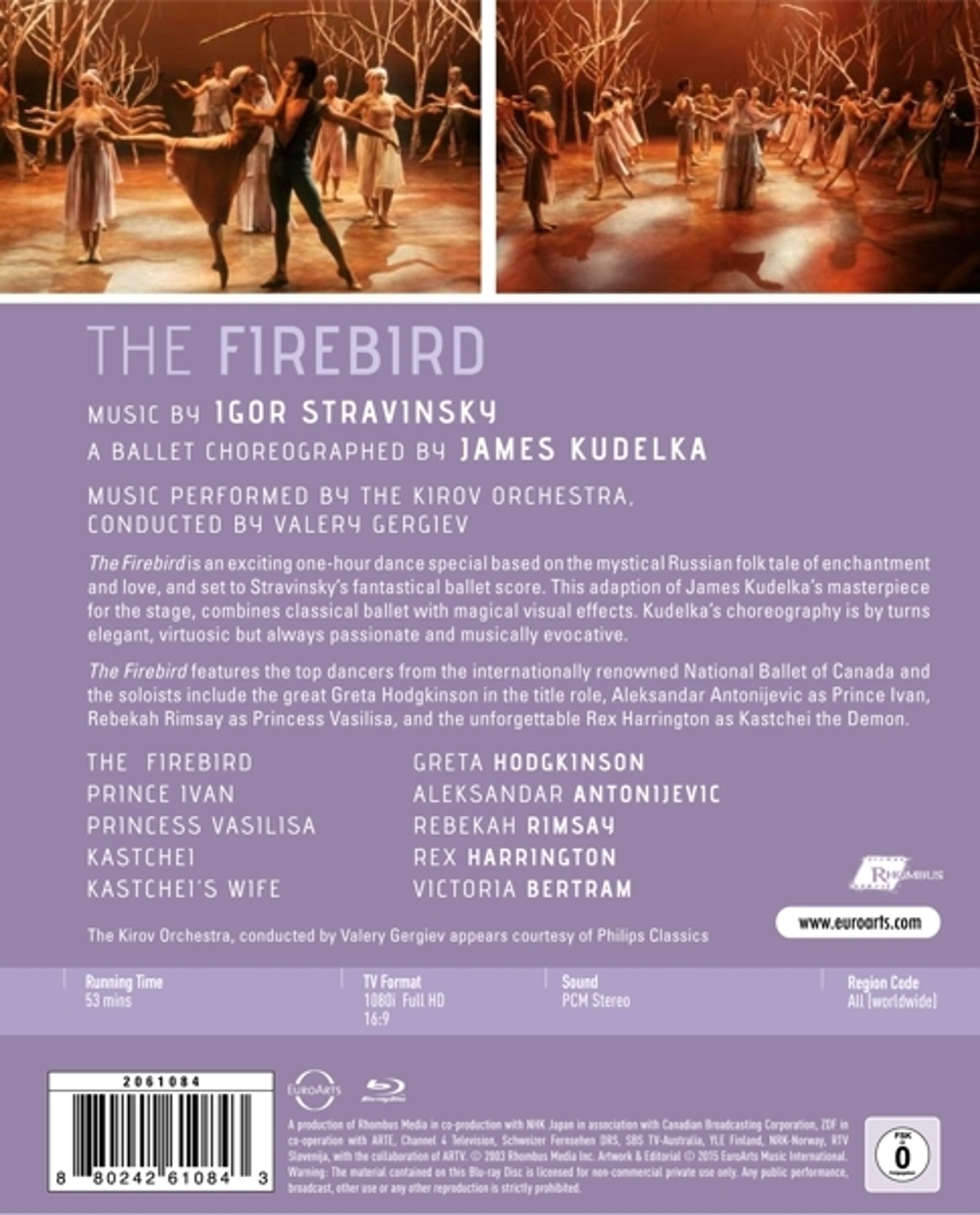 The Firebird features the top dancers from the internationally renowned National Ballet of Canada and the soloists include the great Greta Hodgkinson in the title role, Aleksandar Antonijevic as Prince Ivan, Rebekah Rimsay as Princess Vasilisa, and the unforgettable Rex Harrington as Kastchei the Demon.