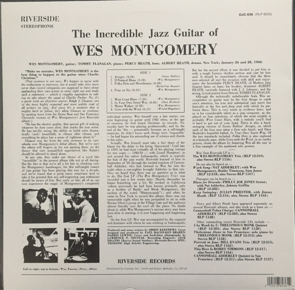 • The Incredible Jazz Guitar Of Wes Montgomery - Vinyl