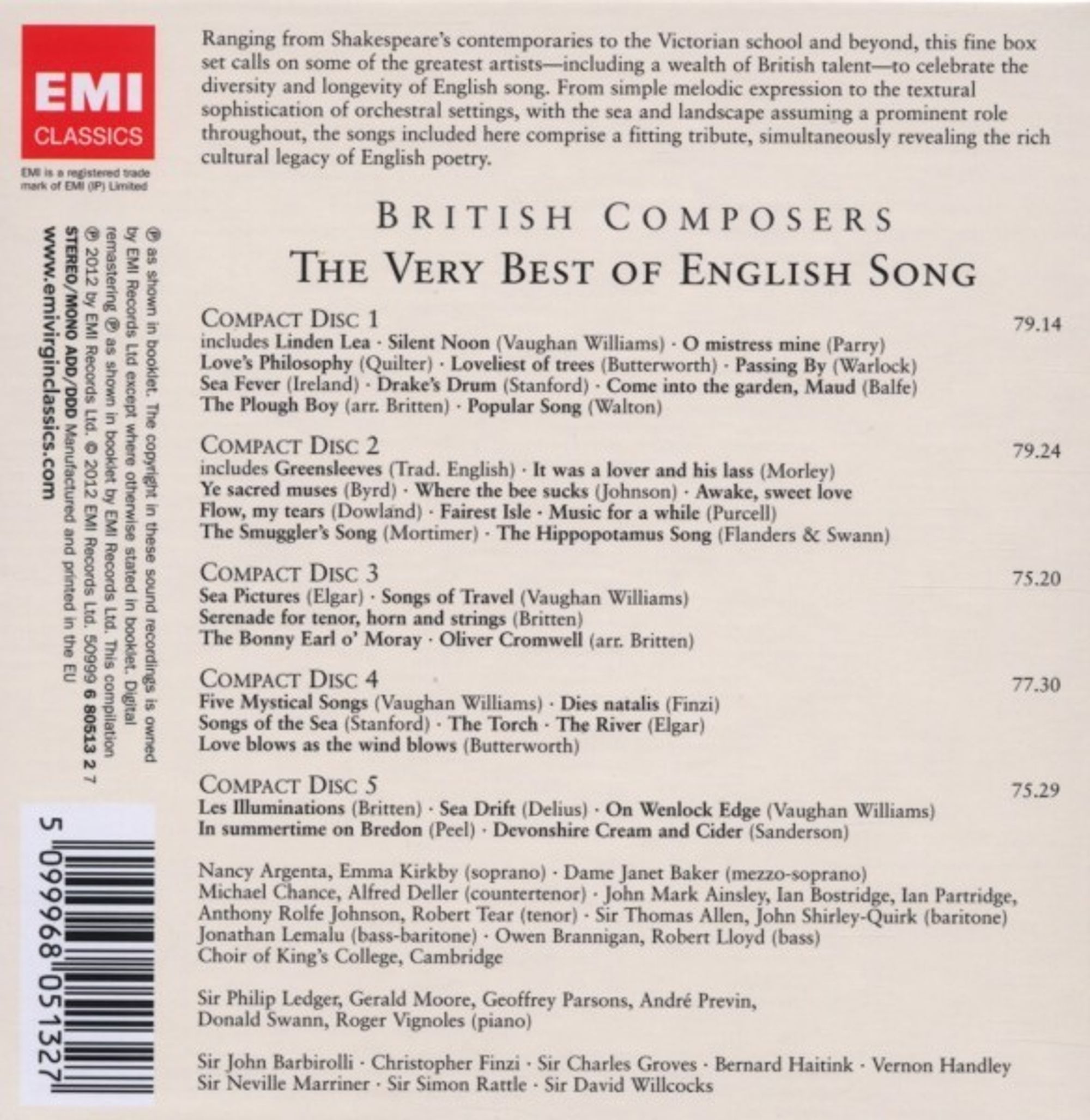 - Sea Pictures (Elgar). Songs of Travel (Vaughan Williams)