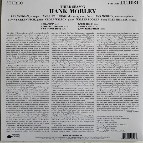 Side AAn Aperitif6:52 Don't Cry, Just Sigh 6:51 Steppin' Stone 5:36 Side BThe Third Season 6:44 Boss Bossa 5:11 Give Me That Feelin' 6:33