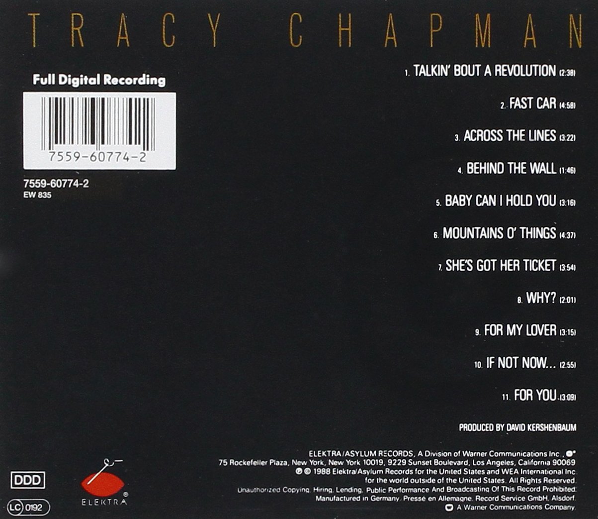 1. Talkin' Bout a Revolution 2. Fast Car 3. Across the Lines 4. Behind the Wall 5. Baby Can I Hold You 6. Mountains O' Things 7. She's Got Her Ticket 8. Why? 9. For My Lover 10. If Not Now... 11. For You