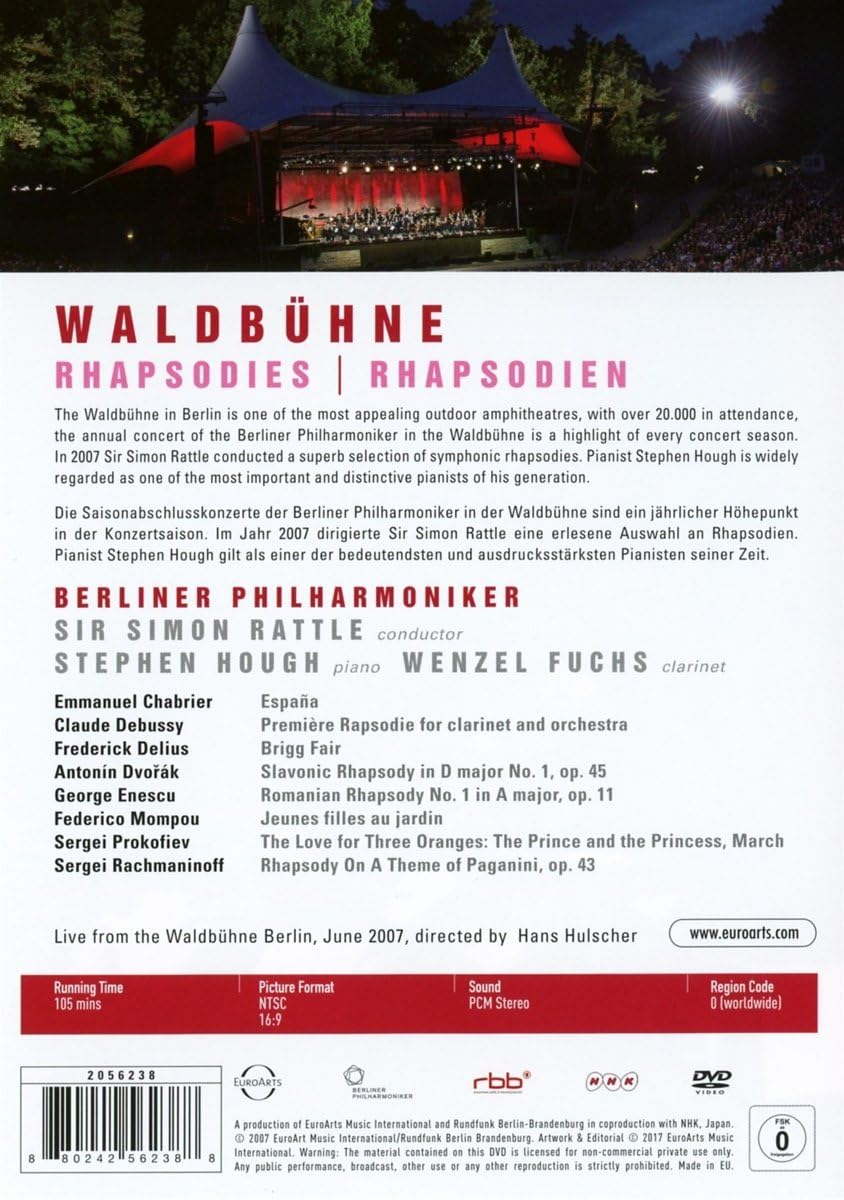 Every last Sunday in June, the Berliner Philharmoniker play their famous Waldbühne concert. In 2007, its theme was an evening of rhapsodies that saw soloists Stephen Hough (who was described by Classic FM as ‘one of the best pianists of all time’) and Wenzel Fuchs (clarinet) joining Simon Rattle and the orchestra.