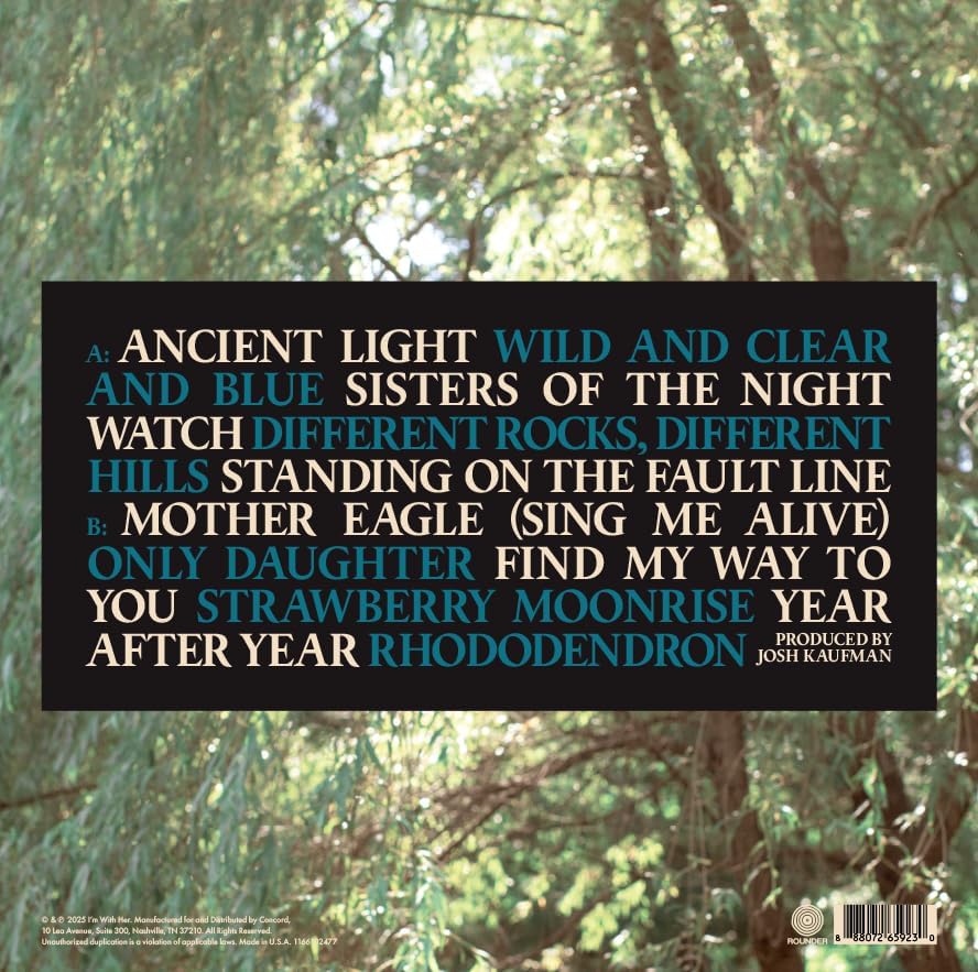 Wild And Clear And Blue is the second full-length album from I'm with Her, featuring multi-Grammy-Award-winners Sara Watkins, Sarah Jarosz, and Aoife O'Donovan. Before coming together these artists co-founded seminal bands (Nickel Creek and Crooked Still) and since have collectively contributed to critically acclaimed albums from esteemed artists including Yo-Yo Ma, The Civil Wars, Kris Kristofferson, John Mayer, Alison Krauss, John Prine, and many others. Since forming in 2014, Sara Watkins, Sarah Jarosz, and Aoife O’Donovan have imbued their songs with a sharply detailed lyricism, graceful musicianship, and—perhaps most powerfully—mesmerizing harmonies that endlessly reflect their extraordinary chemistry.This much-anticipated follow up reveals the commitment to creating a wholly unified band sound. With each track born from close songwriting collaboration, I'm With Her builds an ineffable magic from their fine-spun narratives and breathtaking harmonies. The result is a collection both emotionally raw and intricate, with layers of meaning and insight within even the most starkly adorned track. Produced by Josh Kaufman (Bonny Light Horseman) at Outlier Inn in Woodridge, NY and The Clubhouse in Rhinebeck, NY, Wild And Clear And Blue delivers a warmly textured sound that features a throughline of maternal wisdom which comes from artists who are first and foremost mothers, daughters, sisters, and friends.