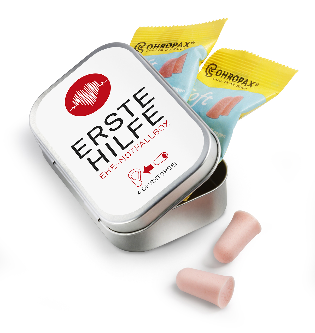 2 seturi dopuri de urechi in cutie metalica - Erste Hilfe