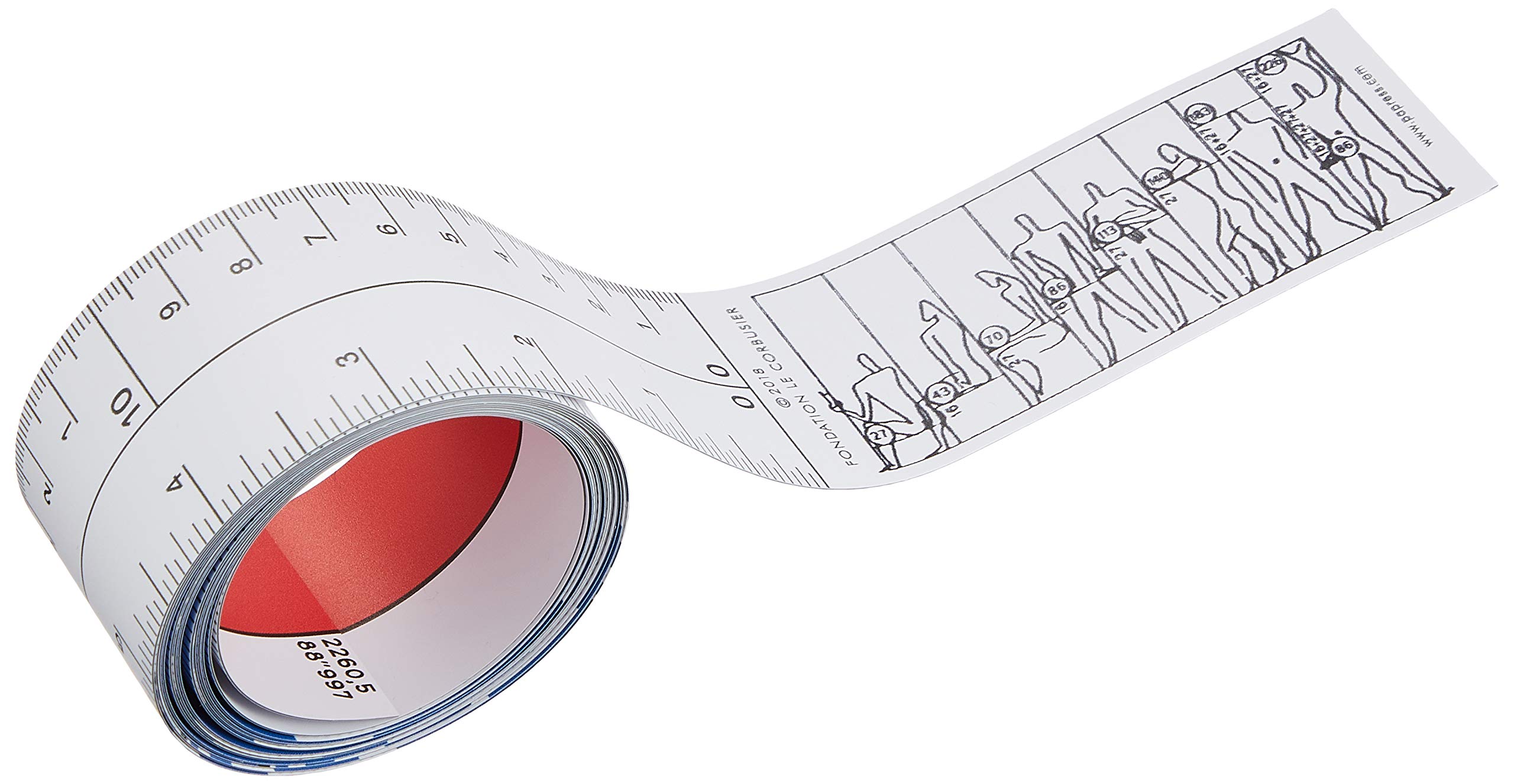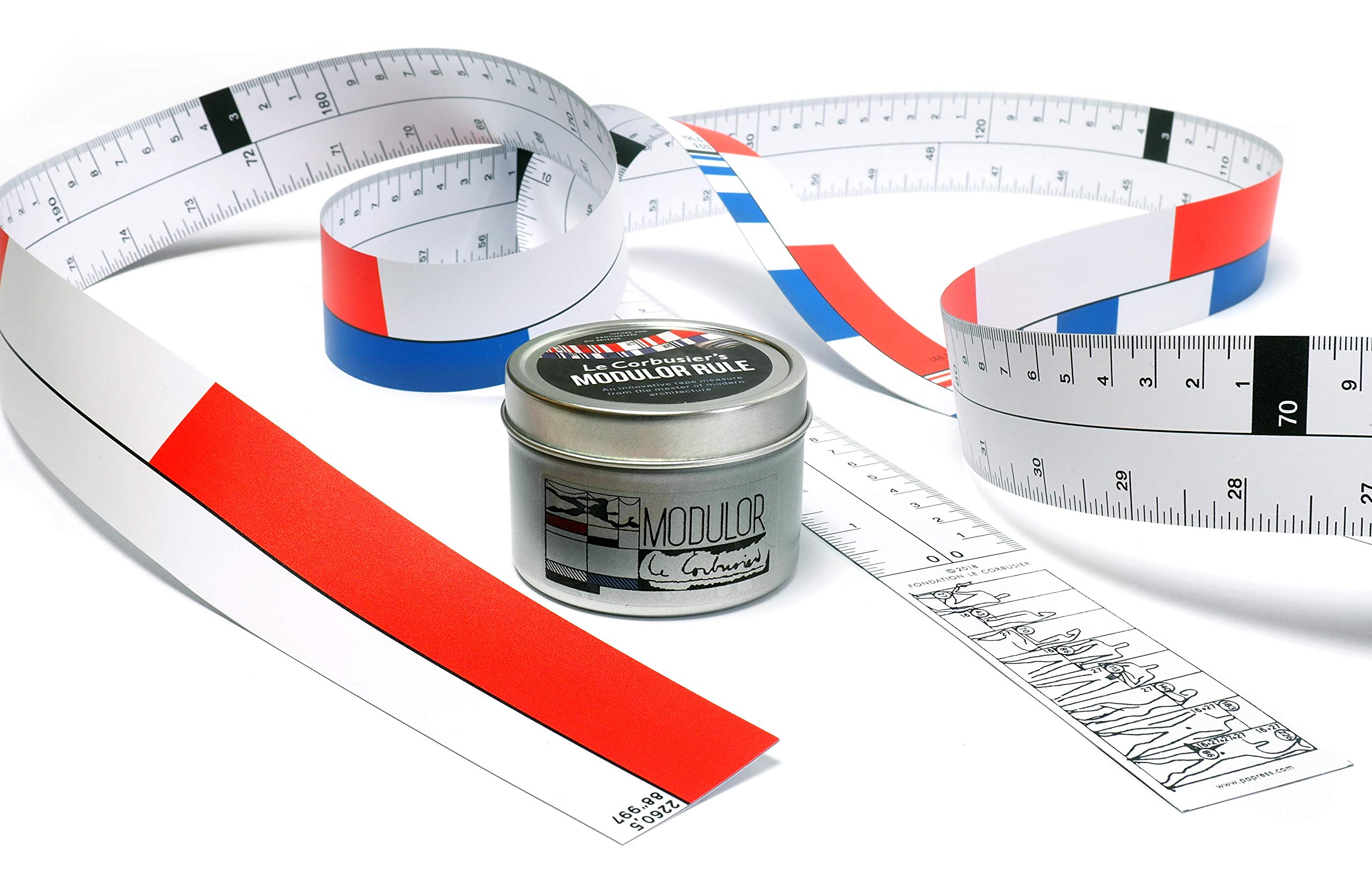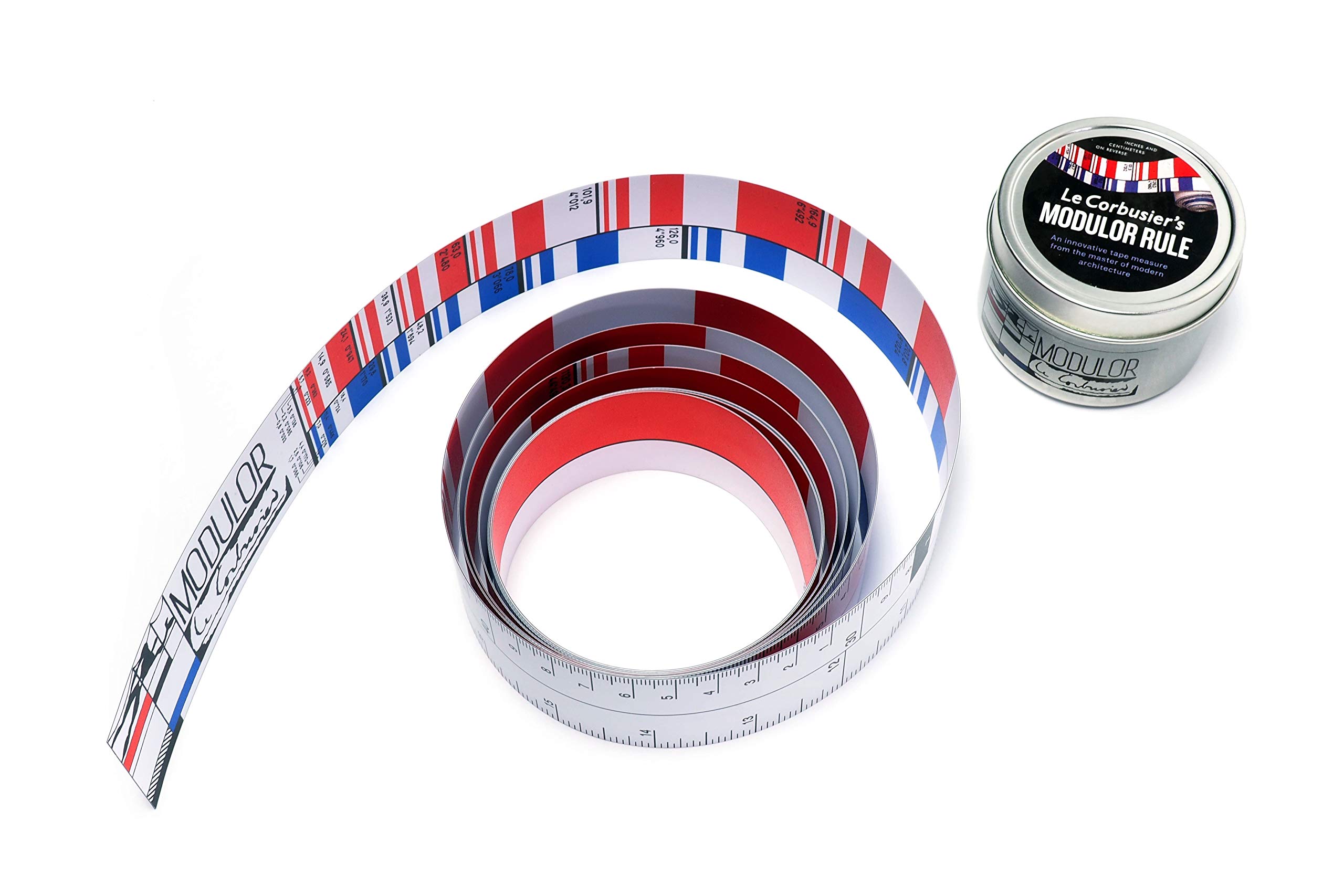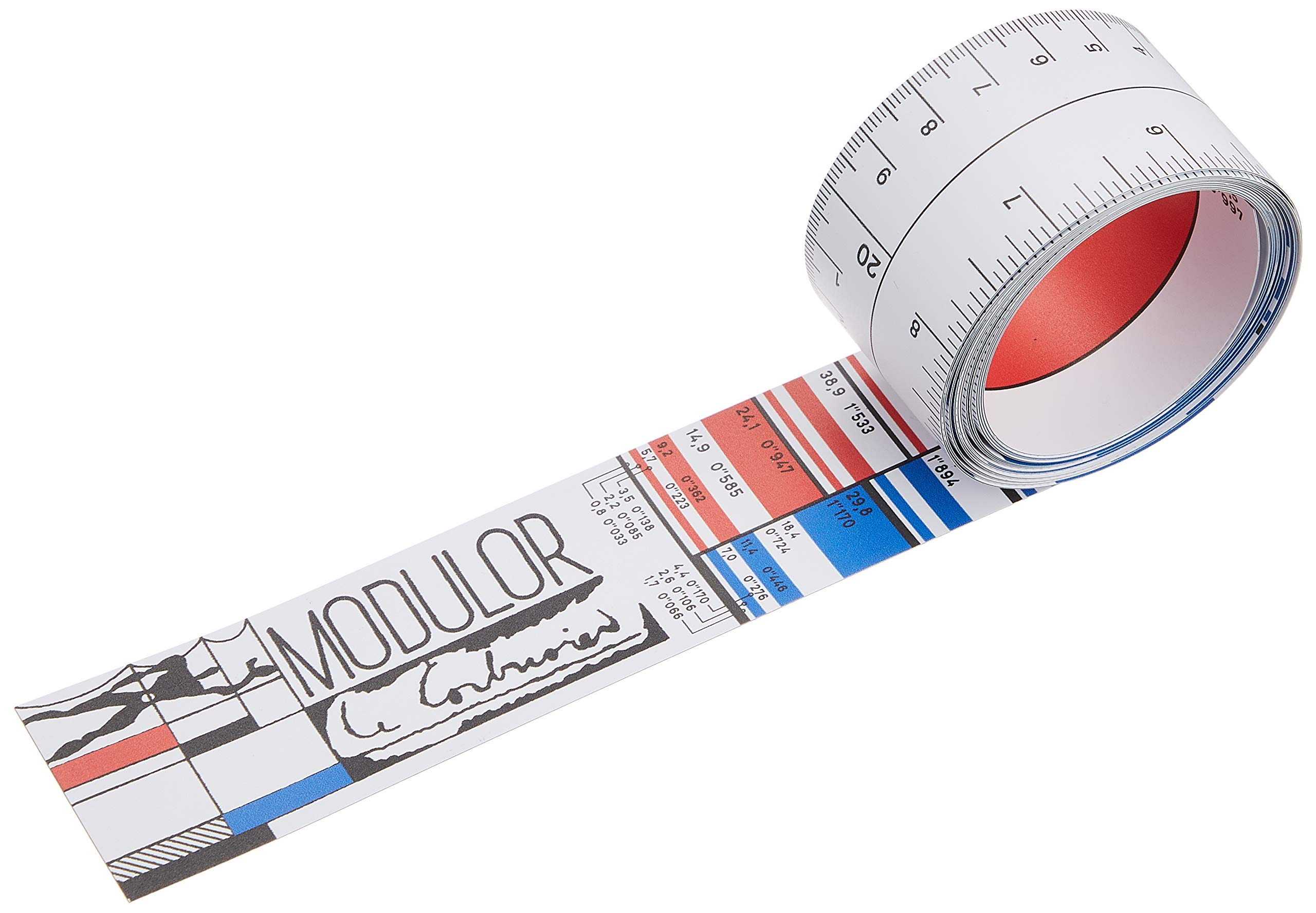 Această ediție facsimilă a benzii de măsurat creată de Le Corbusier și purtată în buzunarul său, într-o cutie de film din metal, prezintă sistemul Modulor cu roșu și albastru pe o parte a unei benzi flexibile, și marcaje imperiale și metrice pe cealaltă parte. Acest obiect are o istorie fascinantă și este cadoul perfect pentru un arhitect, designer,matematician sau oricărei persoane interesate de măsurare.