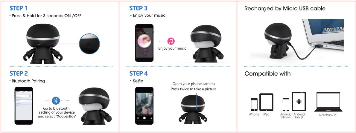 Conectati boxa wireless Mini XBoy la smartphone / tableta / computer sau alte dispozitive mobile prin Bluetooth.