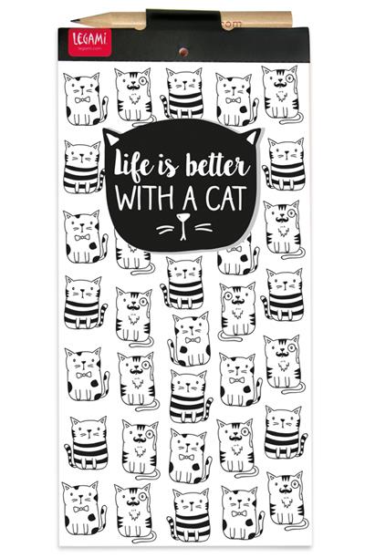Carnet cu magnet - Life is better with a cat, creionul este inclus.