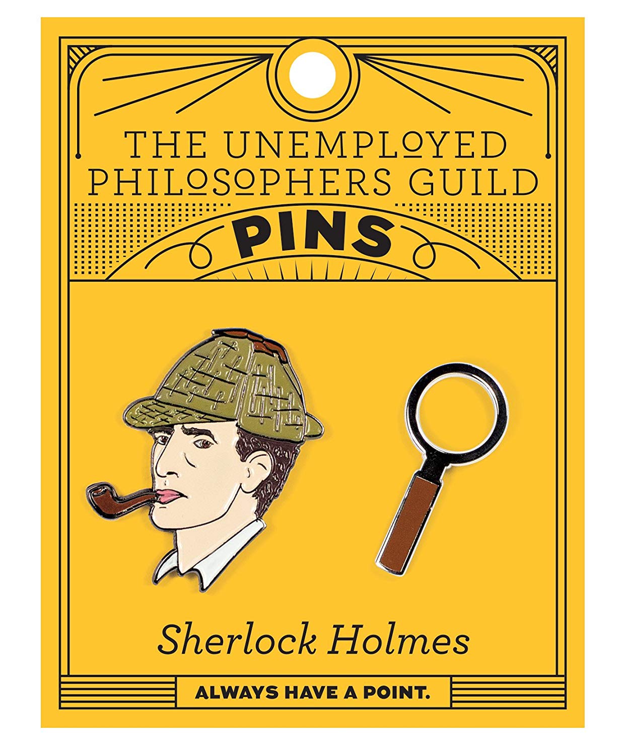 Insigna - Holmes and Magnifying glass, din metal, cu un design unic si intens colroata, ideea potrivita pentru un cadou.