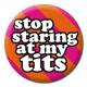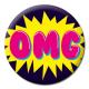 O frumoasa insigna rosie stralucitoare, cu cuvintele „Looking Good And Feeling Great” cu majuscule albe.