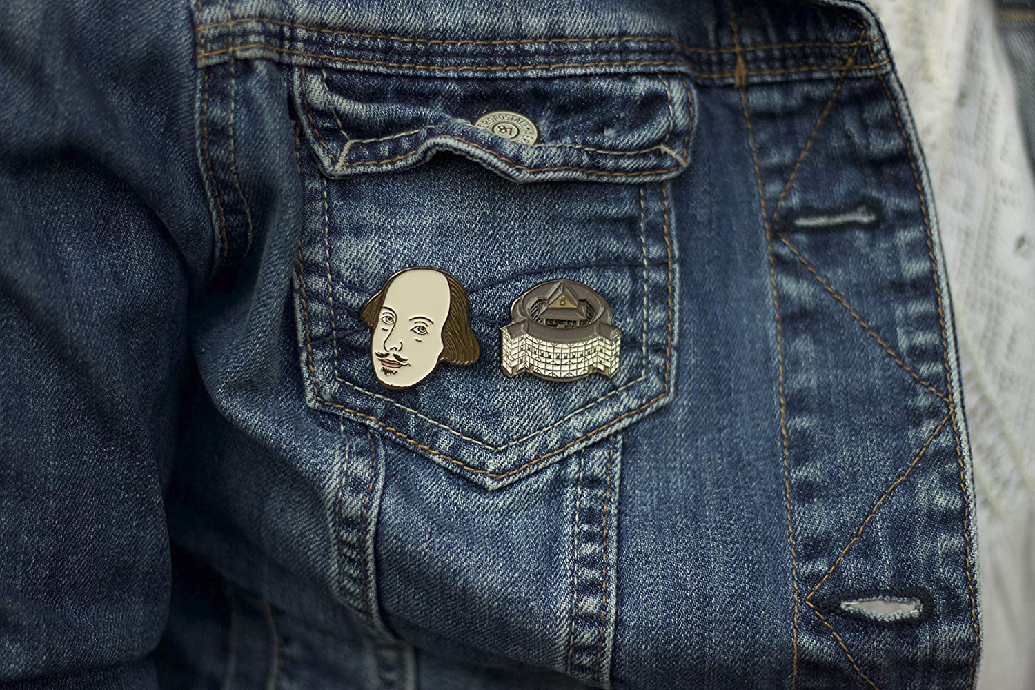 Insigna - Shakespeare and the Globe, din metal cu un design unic si intens colorata.