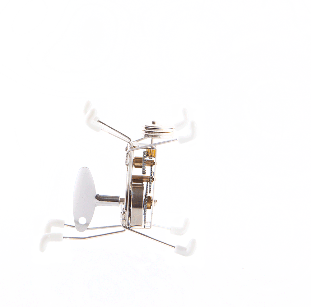 Jucarie mecanica cu cheita. Se poate deplasa peste obiecte mici. Este disponibil in mai multe culori.