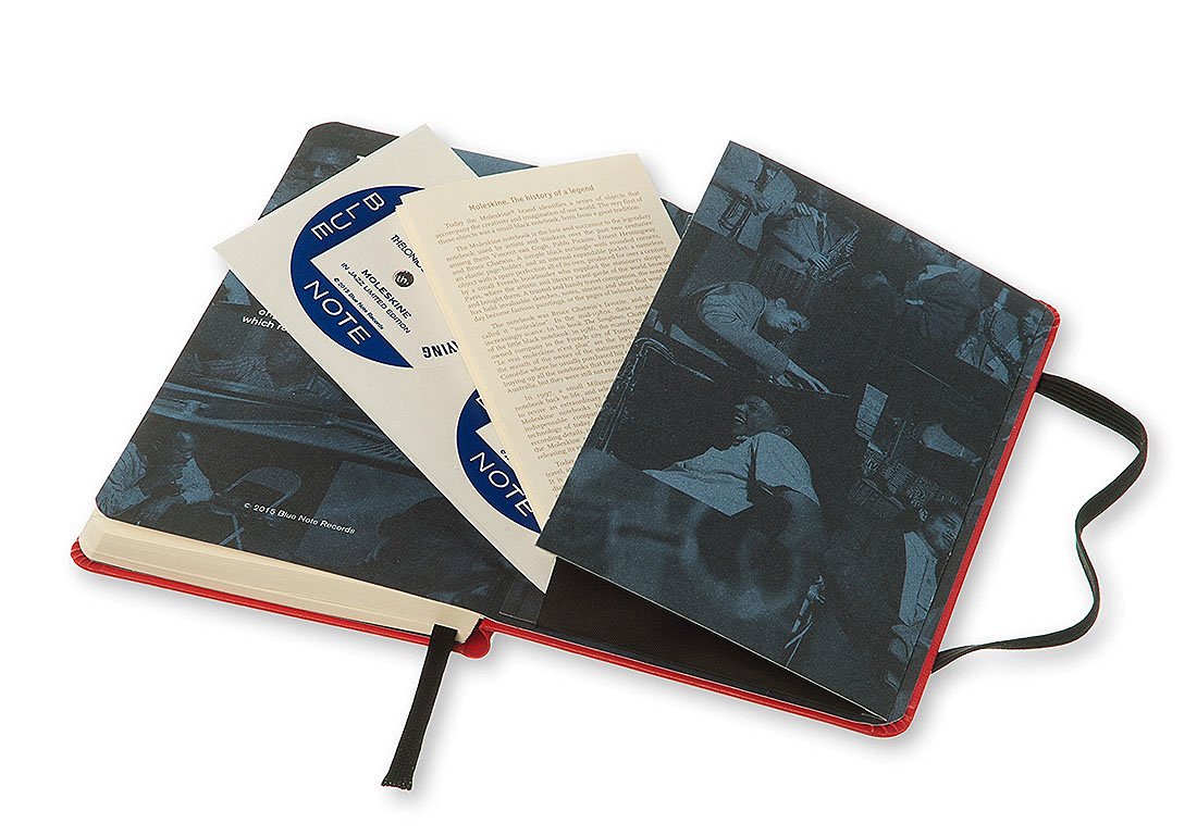 Moleskine's Blue Note Limited Edition Notebookscelebrate the rich heritage of the eponymous jazzmusic label. Featuring customised imagery on thecovers and endpapers, as well as a sheet of themedstickers, these notebooks are perfect for die-hardjazz fans. The hard covers feature Moleskine'sclassic rounded corners and elastic closure. Theyalso include a ribbon bookmark and an expandableinner pocket. The Moleskine Pocket Blue Notenotebook has 192 acid-free, ruled pages and a redcover celebrating Thelonious Monk's Genius of Modern Music compilations.