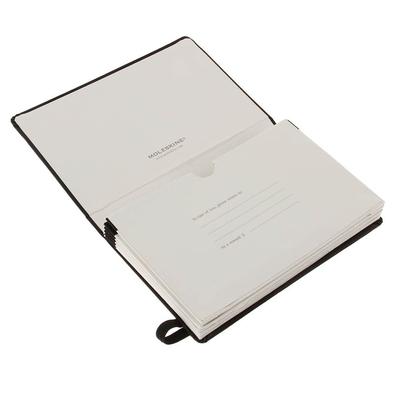 The Moleskine Portfolio XS is a multi-pocketed folder for your receipts, cards and other small keepsakes. With a hard cover, rounded corners and elastic closure, the XS contains 2 pockets.