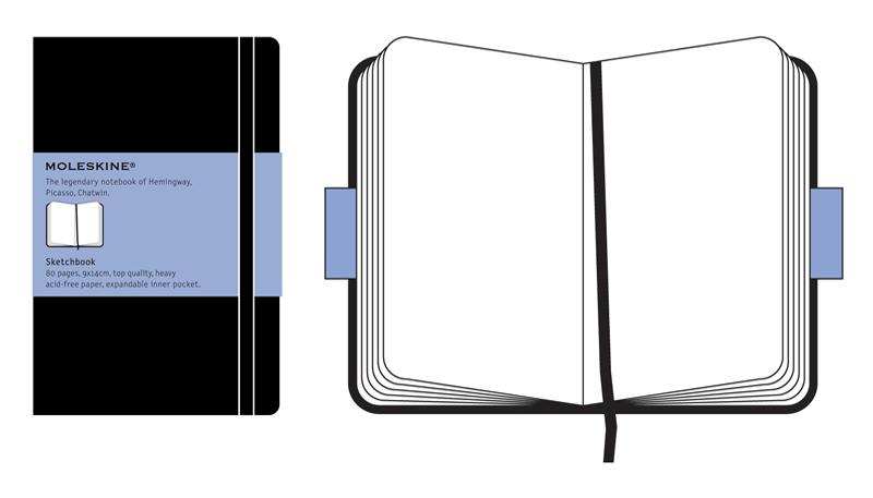 The Moleskine Pocket Sketchbook is made with top quality heavy paper and is perfect for on the go drawings, sketches and tempera colors. Every Moleskine product is thread bound and has a cardboard bound cover with rounded corners, acid free paper, a bookmark, an elastic closure and an expandable inner pocket that contains the Moleskine history.